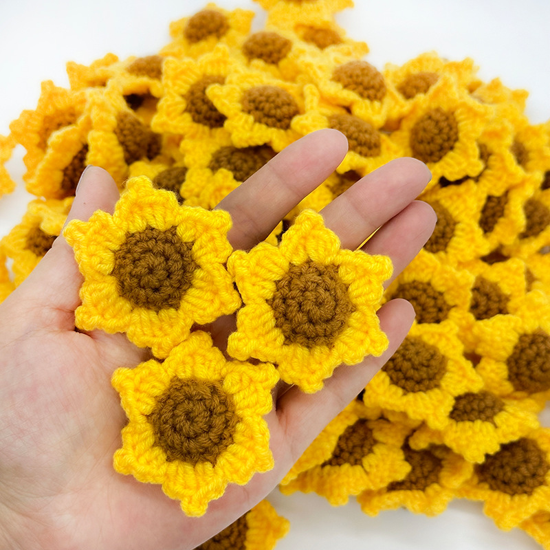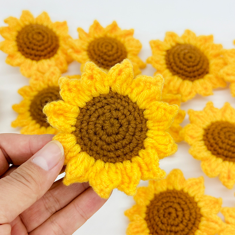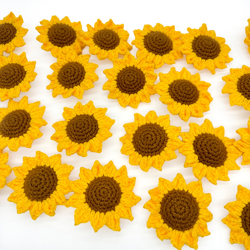 3 круга с головками подсолнухов; 4 круга с головками подсолнухов; 5 кругов с головками подсолнухов; 6 кругов с головками подсолнухов; Аксессуары для одежды «Подсолнух» 8 см [Ротанг 15]; пушистый цветок