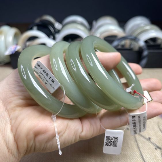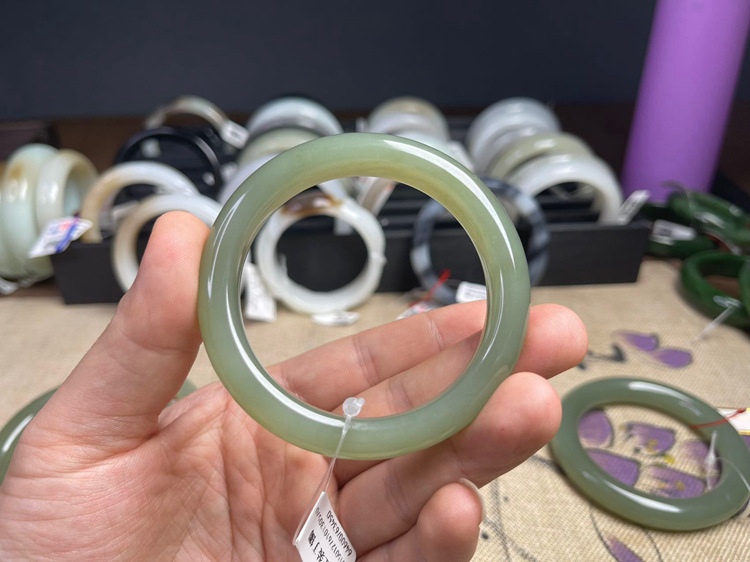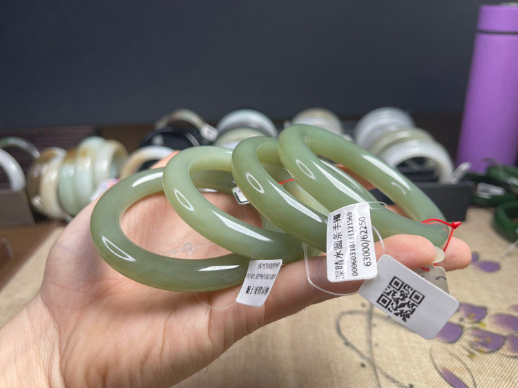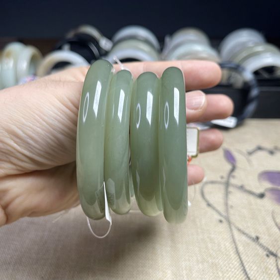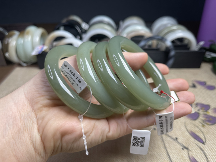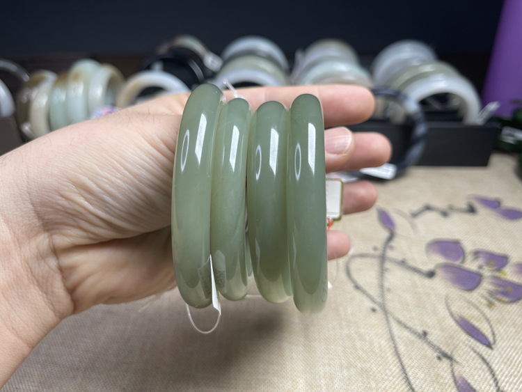 [Горячие продажи] Синьцзян Hetian нефрит натуральный лед база Солнечная Вода озеро вода зеленый нефрит браслет круглые полосы благословенный браслет красота браслет