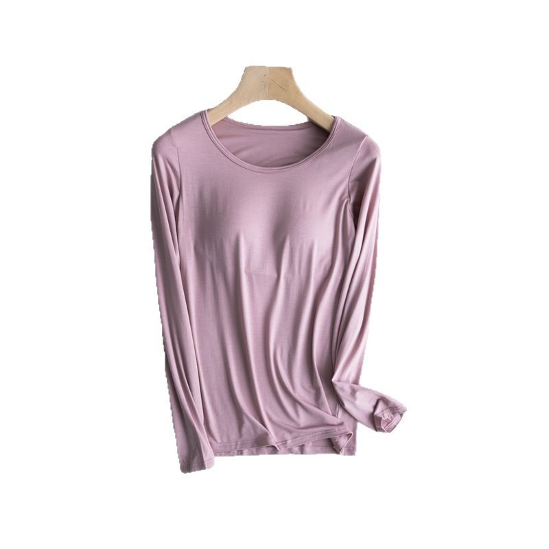 Модальная свободная футболка больших размеров с длинными рукавами и нагрудной накладкой, Женская чашка без бюстгальтера, интегрированная основа для йоги, оптовая продажа с фабрики