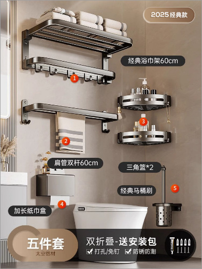 Классическая модель — двойной складной, 50 см; Классическая модель — двойной складной, 60 см; Классическая модель — двойной складной, 70 см; Обновленная двойная складная модель 40 см; Обновленная двойная складная модель 50 см; Обновленная двойная складная модель 60 см; Обновленная двойная складная модель длиной 70 см; Флагманская модель - полотенцедержатель для ванной 50 см; Флагманская модель - полотенцедержатель для ванной 60 см; Роскошный двойной складной 40; Роскошный двойной складной 50; Роскошный двойной складной 60; Роскошный двойной складной 70; Унитазная щетка Gun Grey с удлиненной утолщенной головкой; 5-рядный крючок Gun Grey Space Aluminium; Длинная коробка для салфеток серого цвета; Двухслойная треугольная корзина серого цвета с стержнем и крючком; Вешалка для полотенец 60см.; Классическая модель-двойной складной набор из 2 предметов А; Классическая модель-двойной складной комплект из 2 предметов B; Классическая модель-двойной складной набор из 3 предметов А; Классическая модель-двойной складной набор из 3 предметов B; Классическая модель-двойной складной набор из 4 предметов.; Классическая модель-двойной складной набор из 5 предметов.; Классическая модель-двойной складной набор из 6 предметов.; Классическая модель-двойной складной набор из 7 предметов.; Модернизированная модель — двойной складной набор из 2 предметов B; Модернизированная модель — двойной складной набор из 3 предметов A; Модернизированная модель — двойной складной набор из 3 предметов B; Модернизированная модель — двойной складной набор из 4 предметов.; Модернизированная модель — двойной складной набор из 5 предметов.; Модернизированная модель — двойной складной набор из 6 предметов.; Модернизированная модель — двойной складной набор из 7 предметов.; Флагманская модель-комплект из 2 предметов с двойной столешницей; Флагманская модель-двойная столешница, набор из 3 предметов А; Флагманская модель-двойная столешница, набор из 3 предметов B; Флагманская модель-комплект из 4 предметов с двойной столешницей; Флагманская модель-комплект из 5 предметов с двойной столешницей; Флагманская модель-комплект из 6 предметов с двойной столешницей; Флагманская модель-комплект из 7 предметов с двойной столешницей