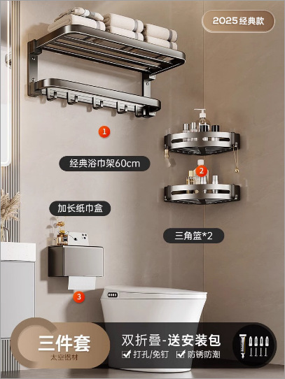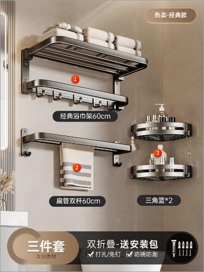 Gun Grey Space Алюминиевая вешалка для полотенец Стеллаж для ванной без перфорации Стеллаж для ванной Туалетная фурнитура