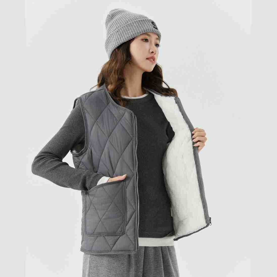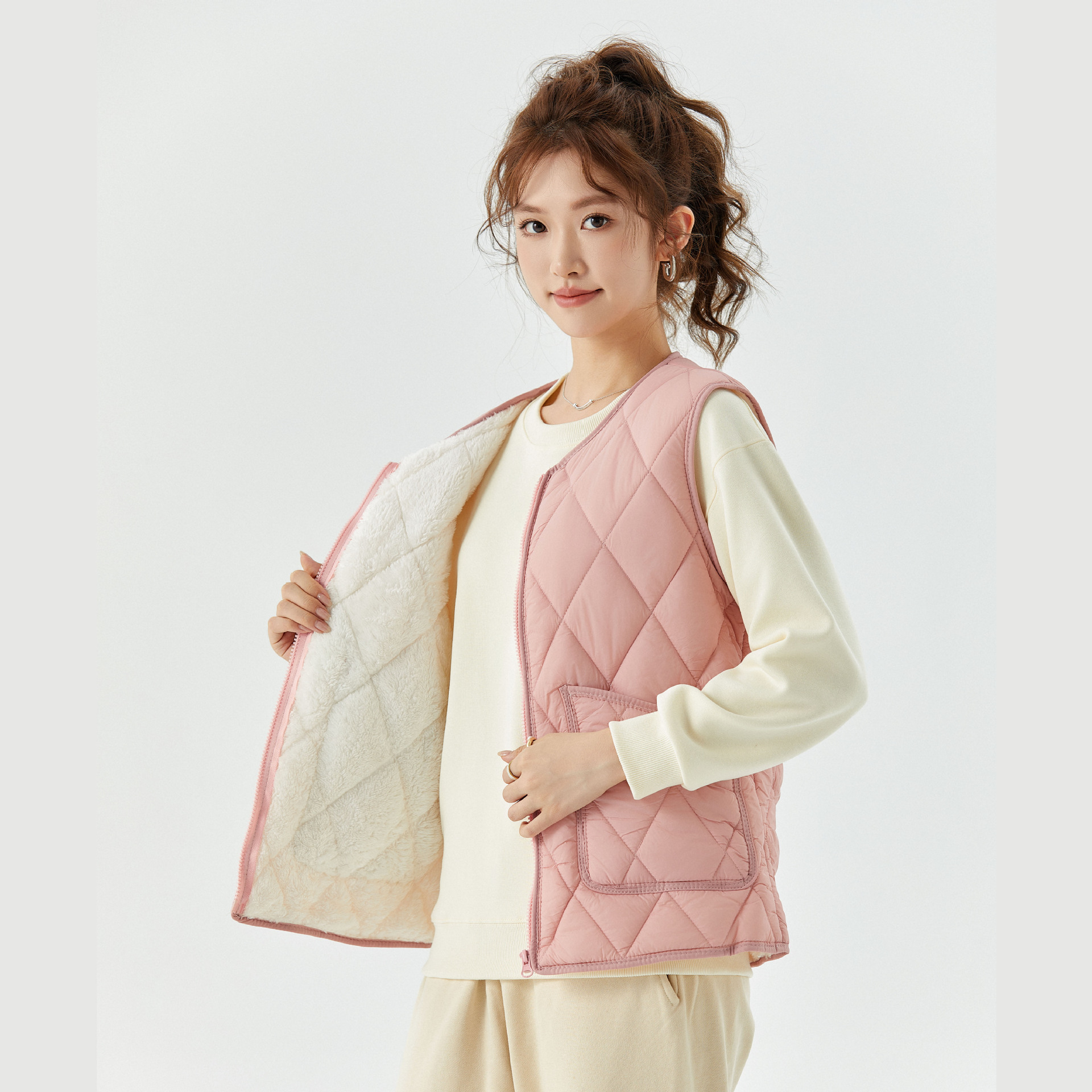 Женский теплый очень большой утолщенный внутренний жилет на флисовой подкладке, Женский Повседневный хлопковый жилет на молнии из овечьей шерсти 2402