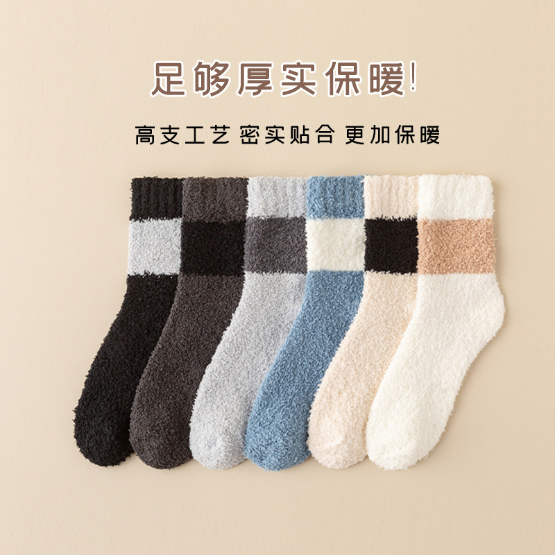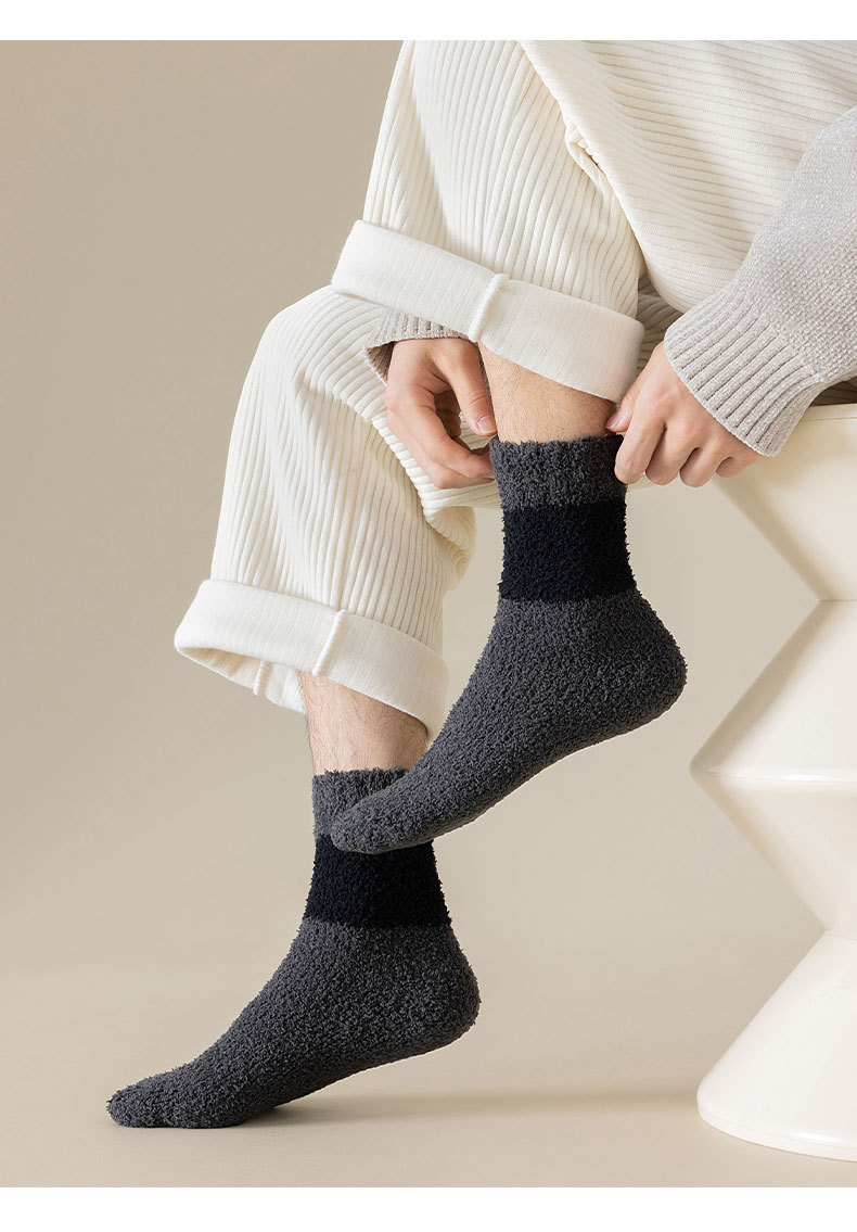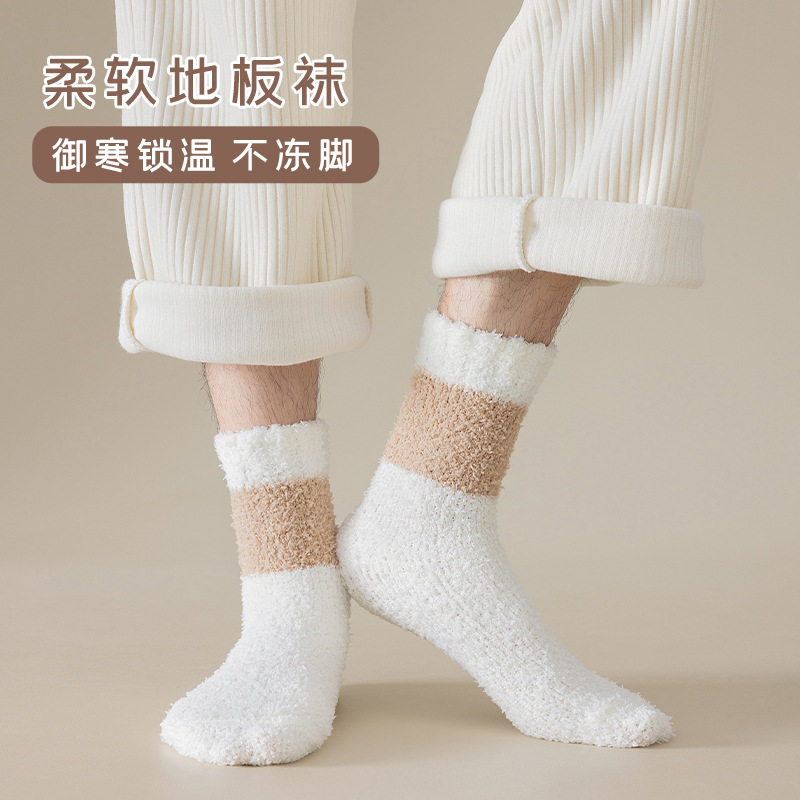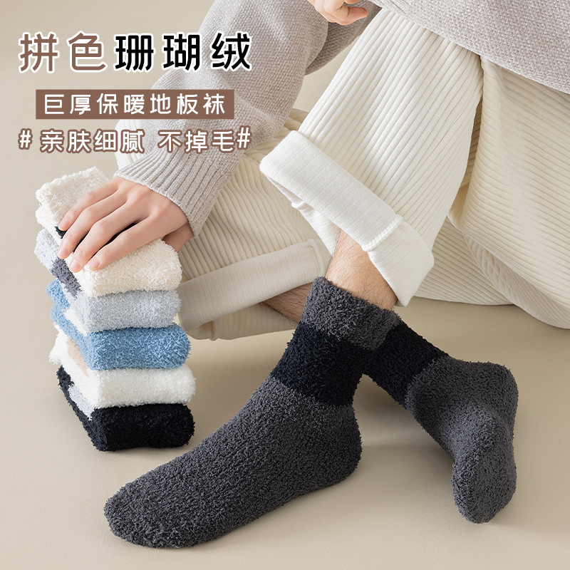 Коралловые бархатные носки, мужские осенне-зимние утолщенные теплые носки, безворсовые носки на флисовой подкладке, однотонные Повседневные носки в пол