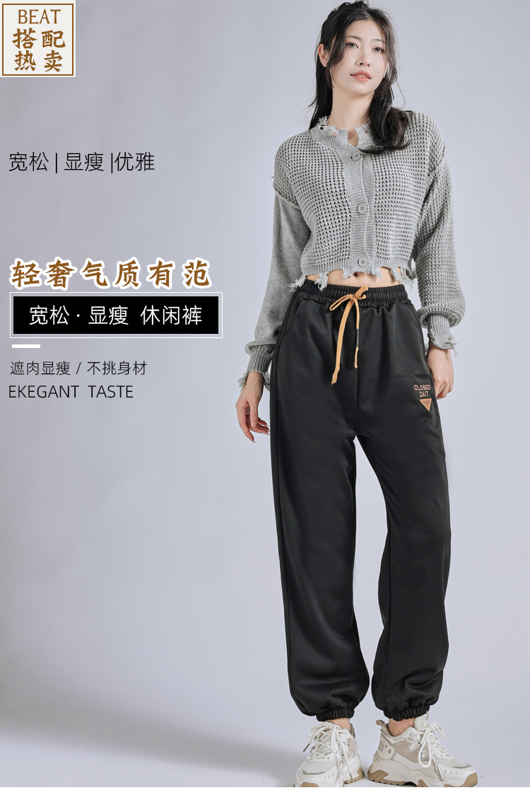 Очень большие повседневные спортивные брюки женские 300 кг Свободные теплые на флисовой подкладке толстые 200 пухлые девушки плюс толстые весенние, осенние и зимние длинные брюки