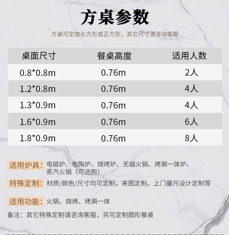 Обеденный стол 0,8* 0.8m (без стула печи), по индивидуальному заказу; Размер обеденного стола 0,8- 1.8m по индивидуальному заказу; Размер обеденного стола 2-8 человек по индивидуальному заказу