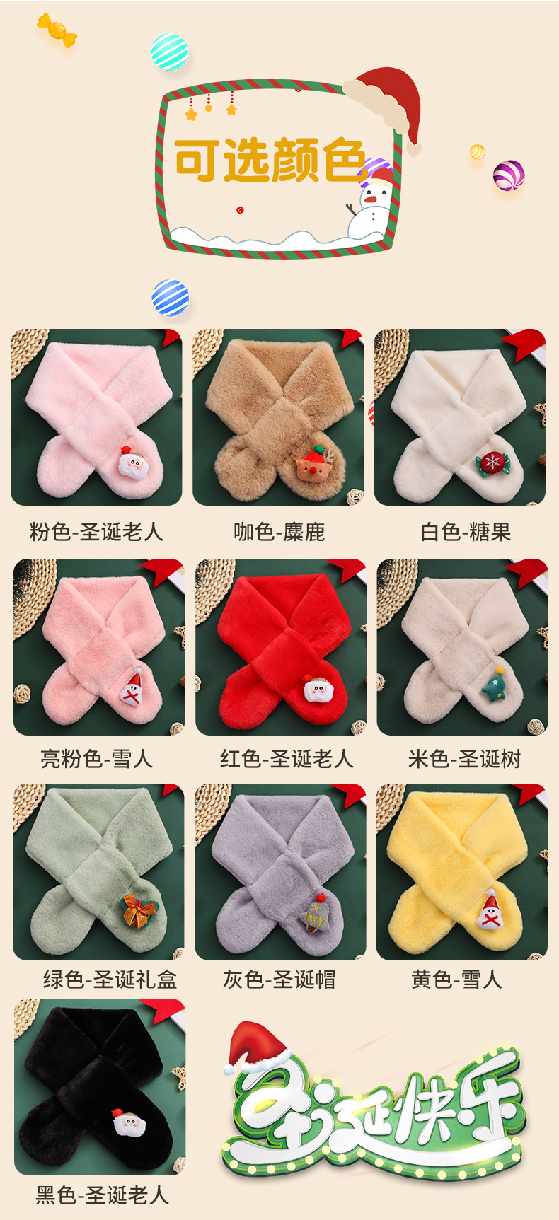 Детский Рождественский шарф, зимний утолщенный теплый детский Подарочный шарф, плюшевый мультяшный Детский милый студенческий шарф