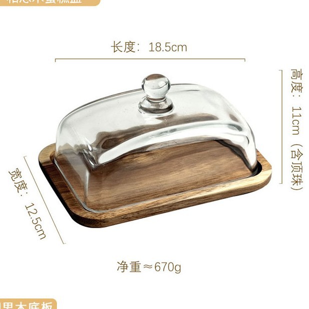 Винтажная тарелка для масла Прямоугольная тарелка для торта Диспенсер Тарелка для фруктов Стеклянная крышка Сладкая тарелка Бамбуковая и деревянная дегустационная тарелка