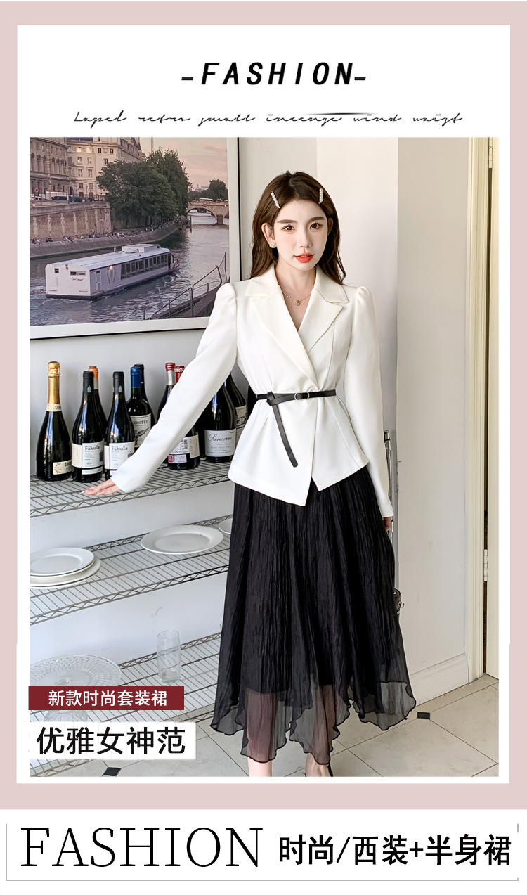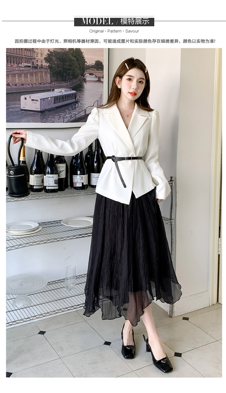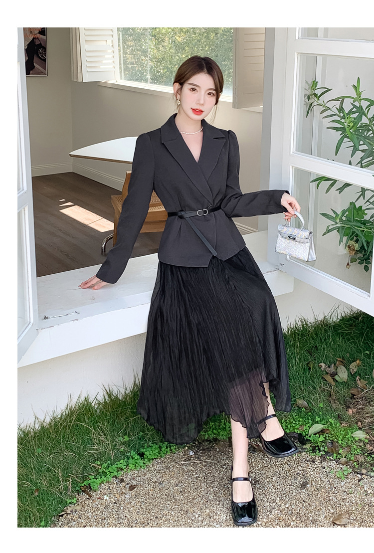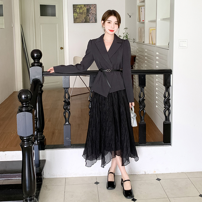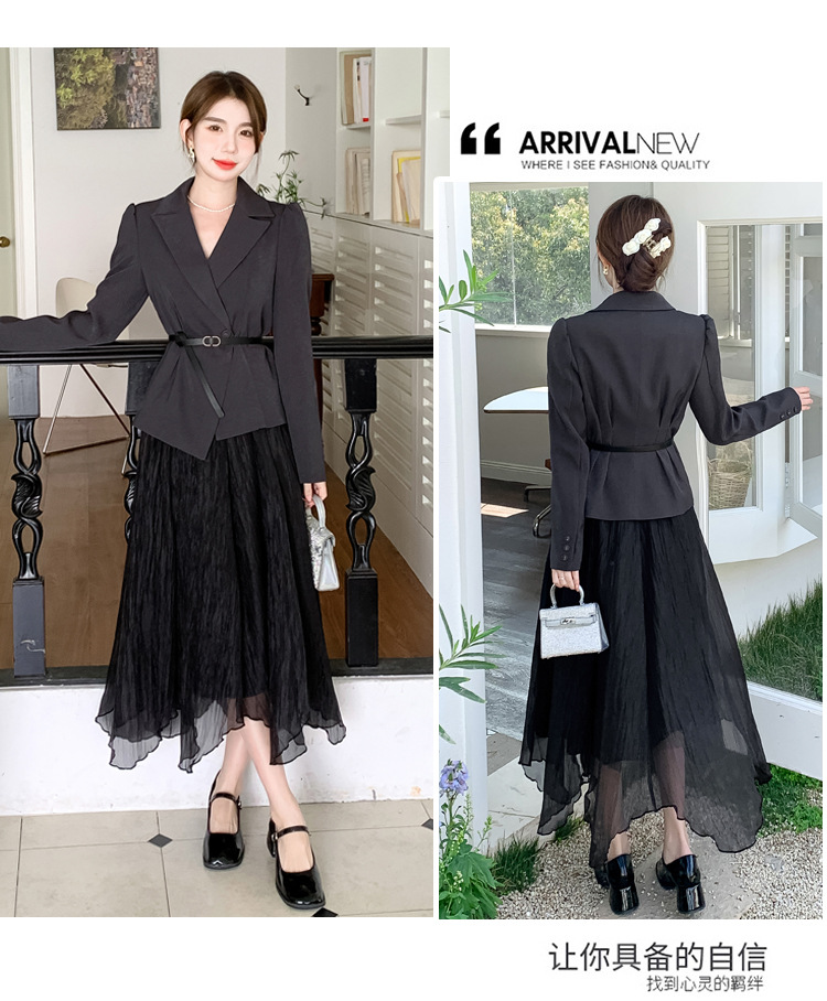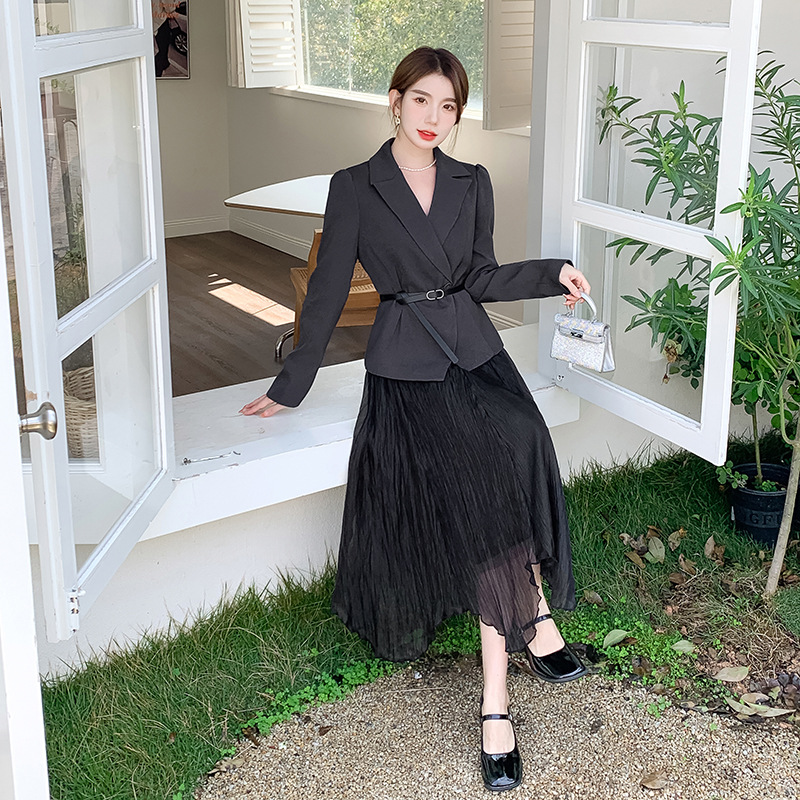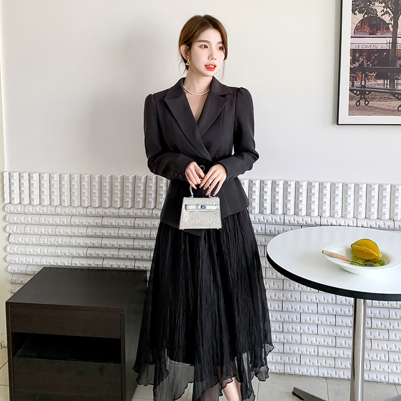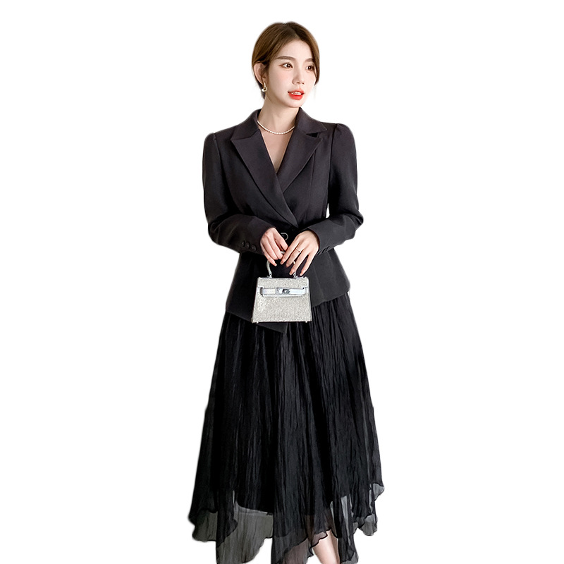 Реальный выстрел в наличии темперамент светский человек платье в стиле Сяосян Костюм Куртка Вертикальная Высокая талия сетчатая юбка костюм осень