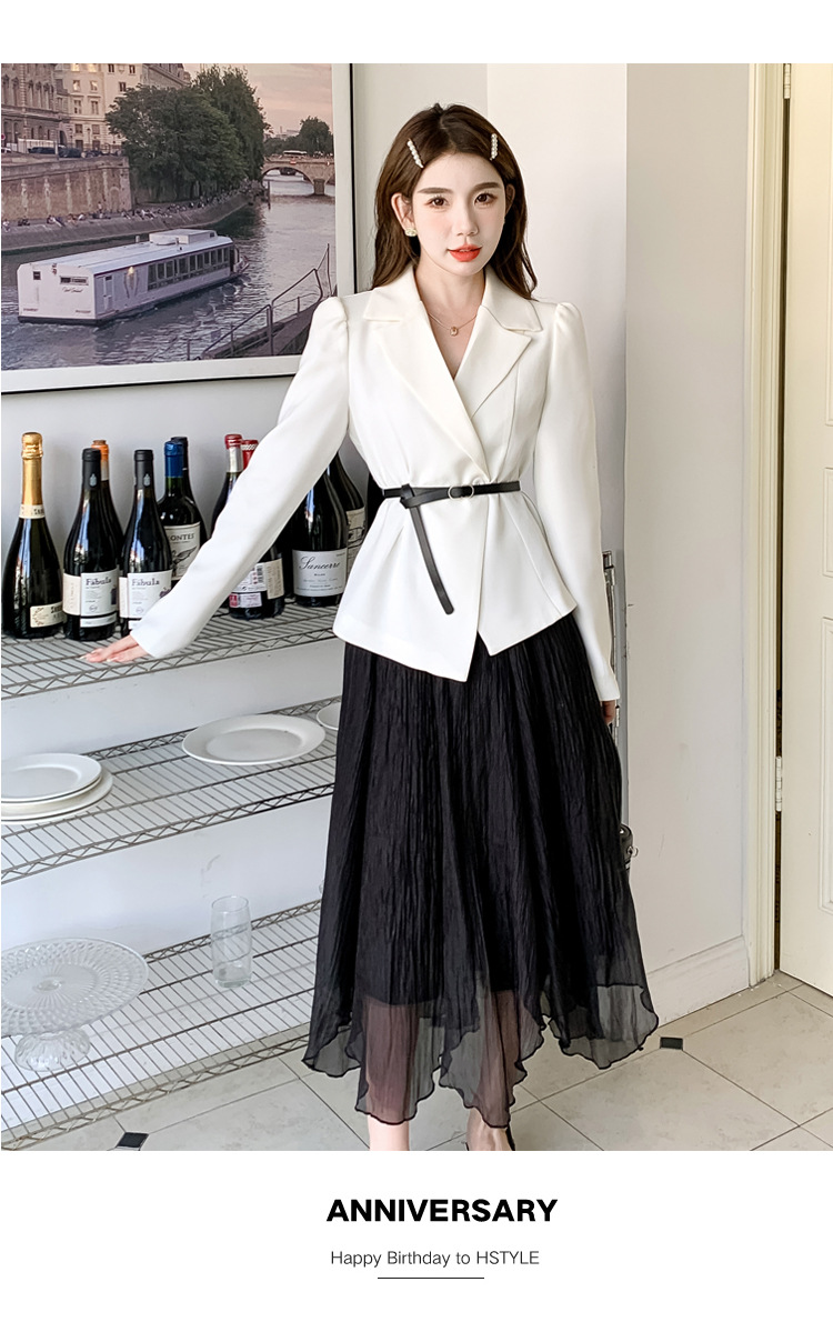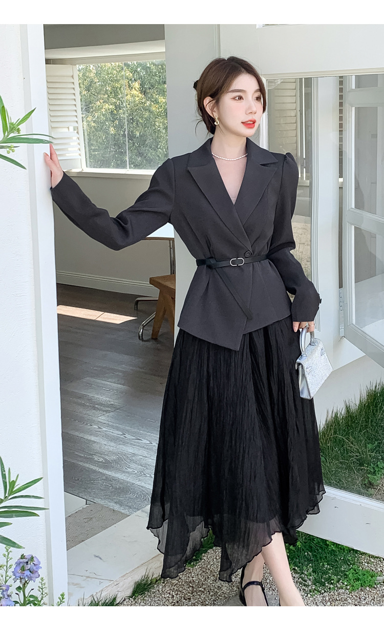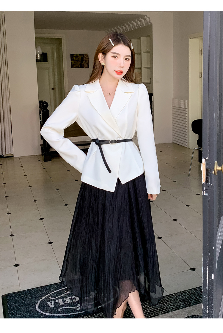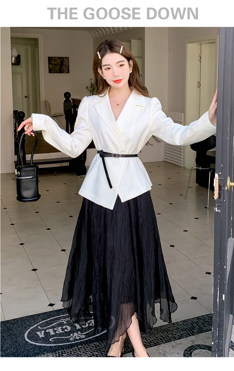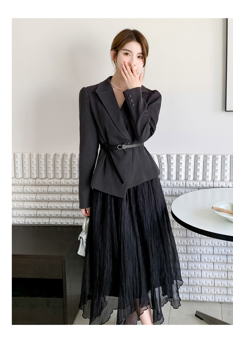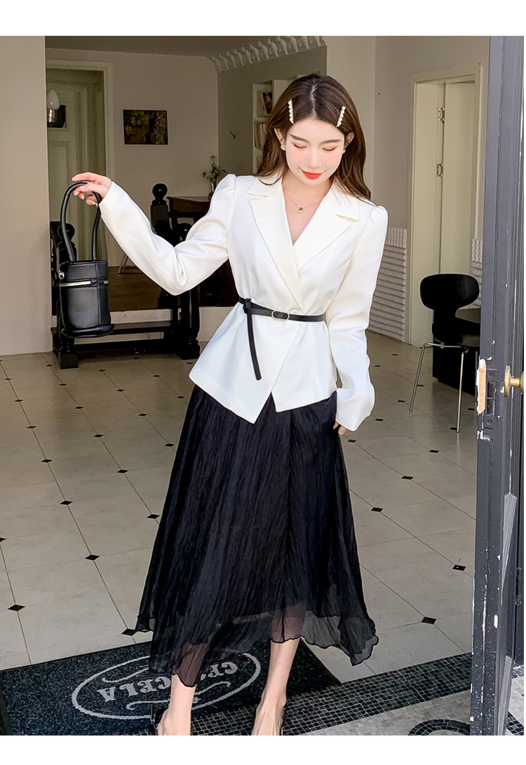Реальный выстрел в наличии темперамент светский человек платье в стиле Сяосян Костюм Куртка Вертикальная Высокая талия сетчатая юбка костюм осень