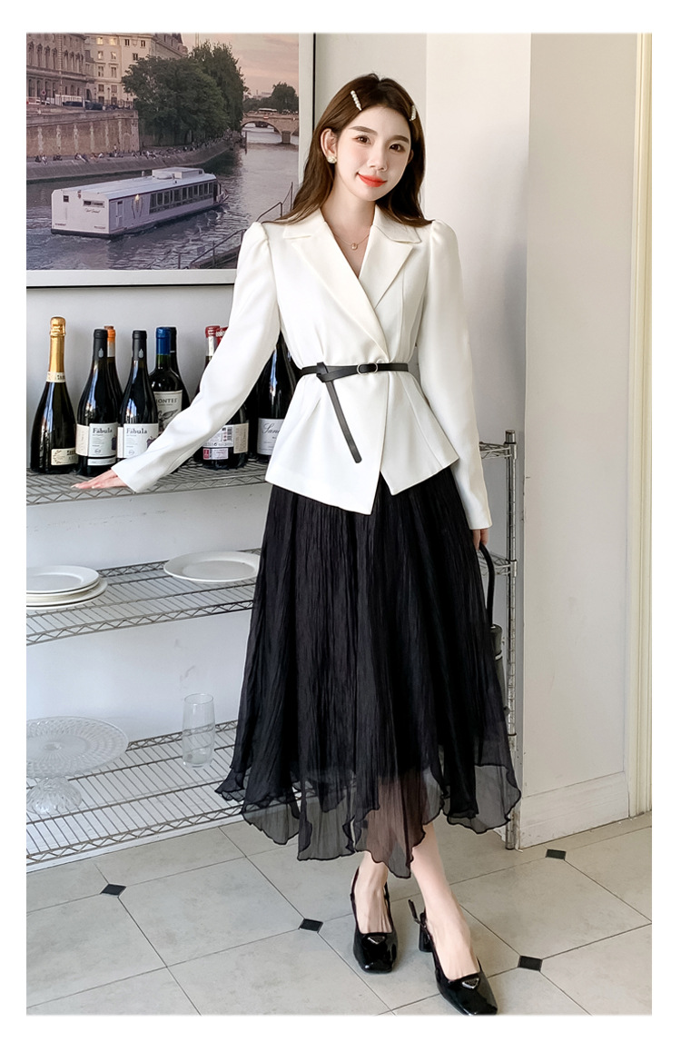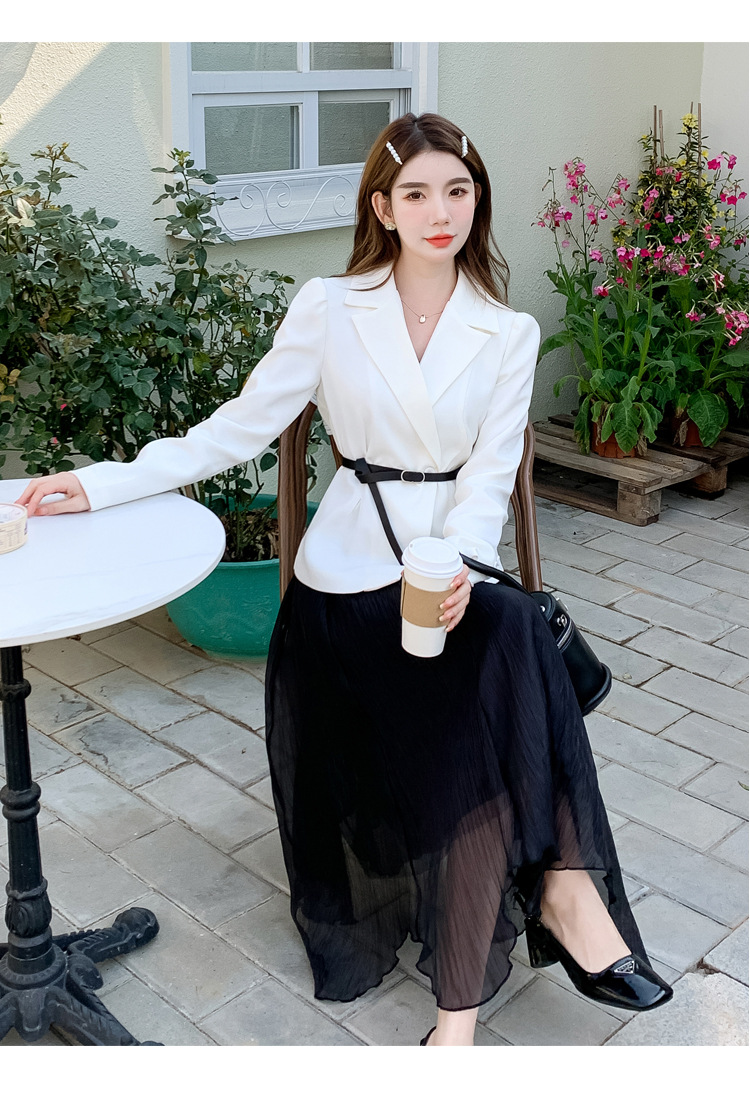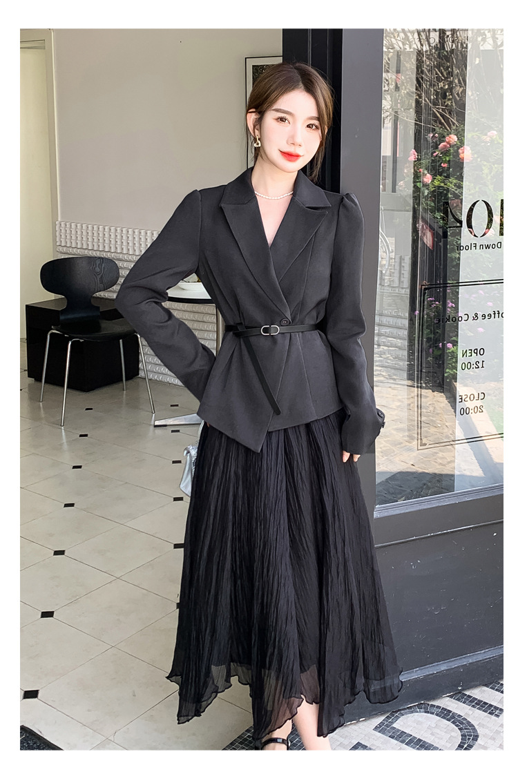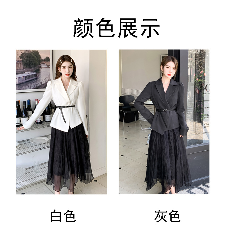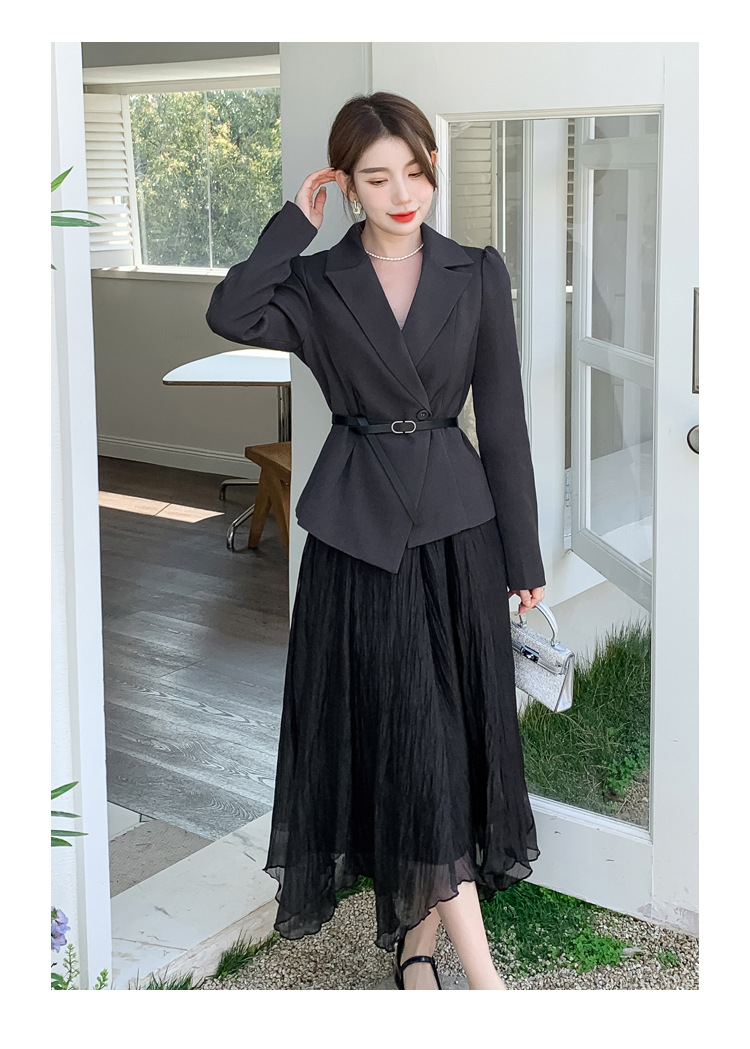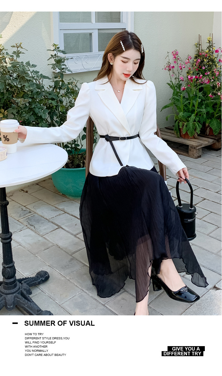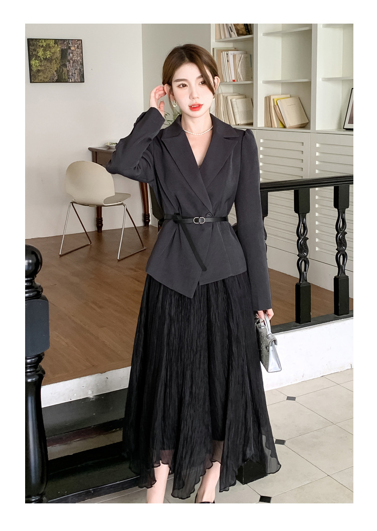 Реальный выстрел в наличии темперамент светский человек платье в стиле Сяосян Костюм Куртка Вертикальная Высокая талия сетчатая юбка костюм осень