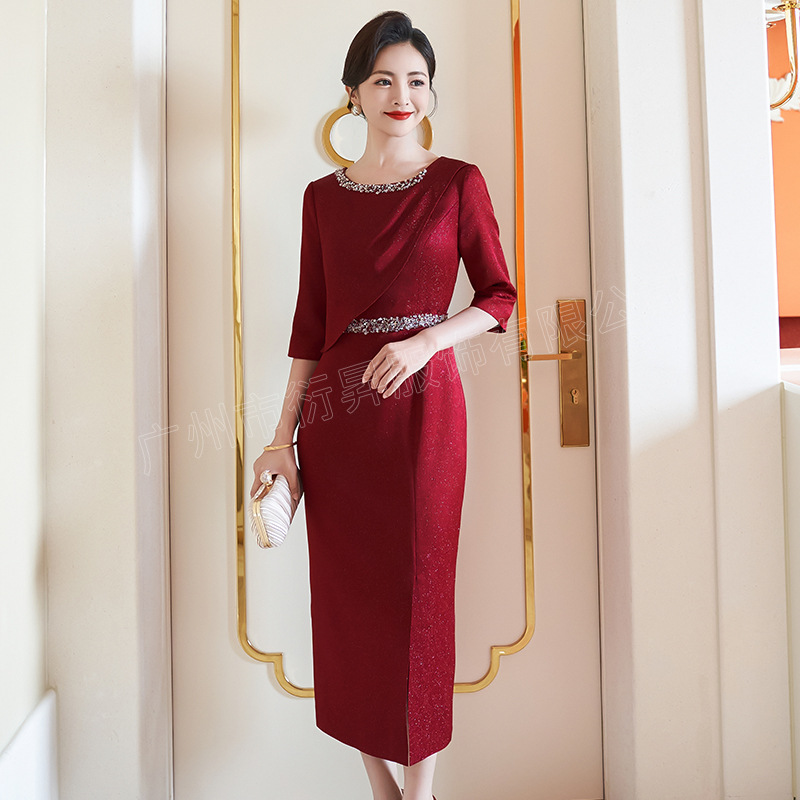 Молодая теща свадебное платье Тостильное платье Легкое роскошное модное свадебное платье с бисером для матери Уксусная кислота Банкетное платье
