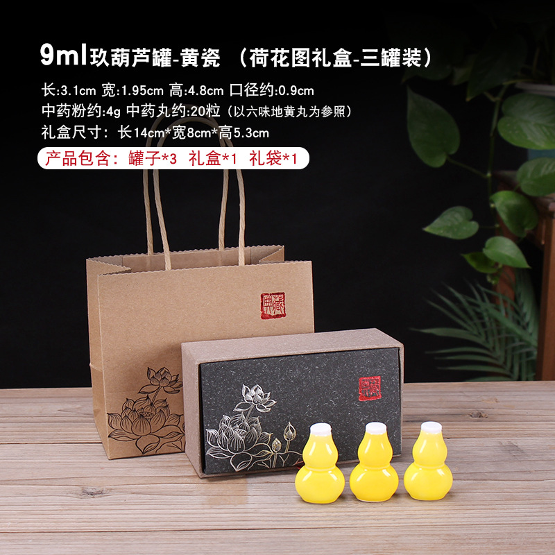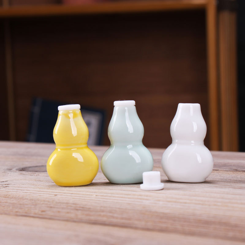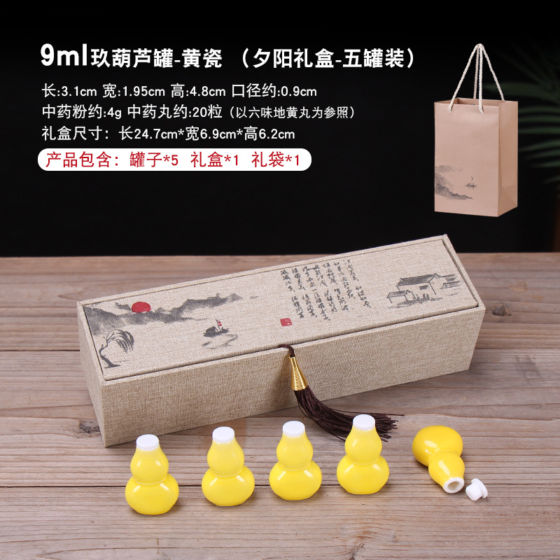 Мини-маленькая фарфоровая банка Портативная бутылка из тыквы Huangdan Medicine Jar Силиконовая пробка Китайская медицина Порошок Герметичная банка для хранения
