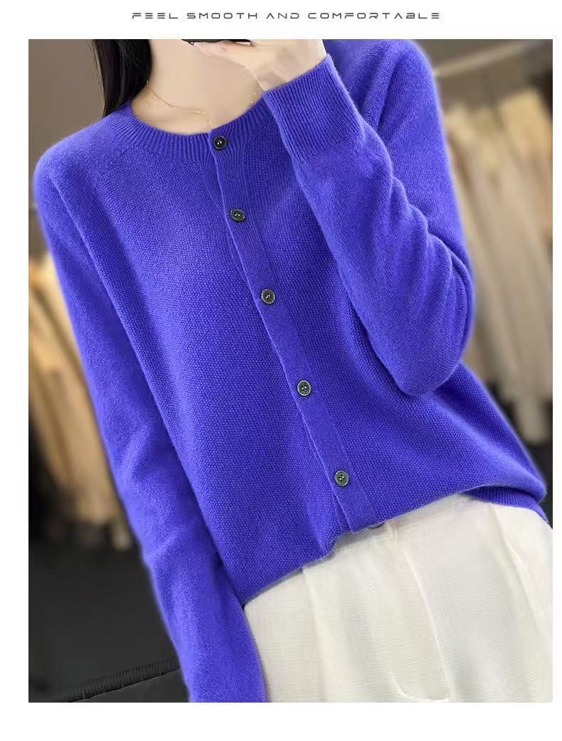 Женский кардиган из шерсти с узором османтуса, приталенный вязаный свитер-пальто для осени и зимы, бесшовный топ с круглым вырезом, модный.