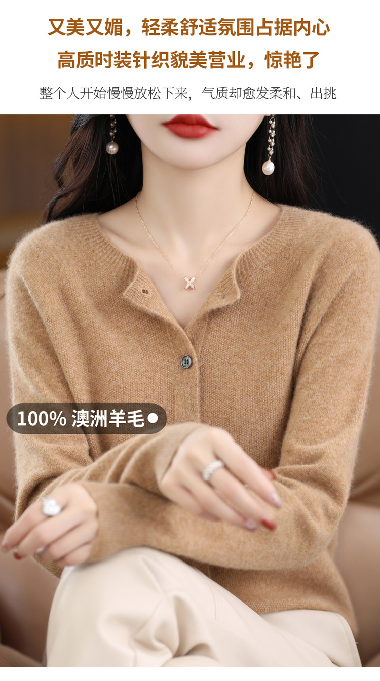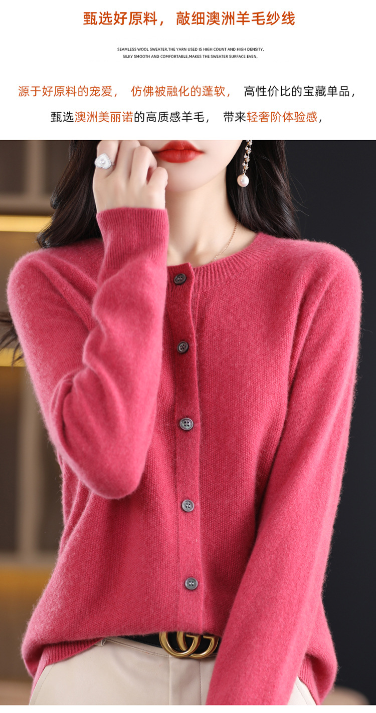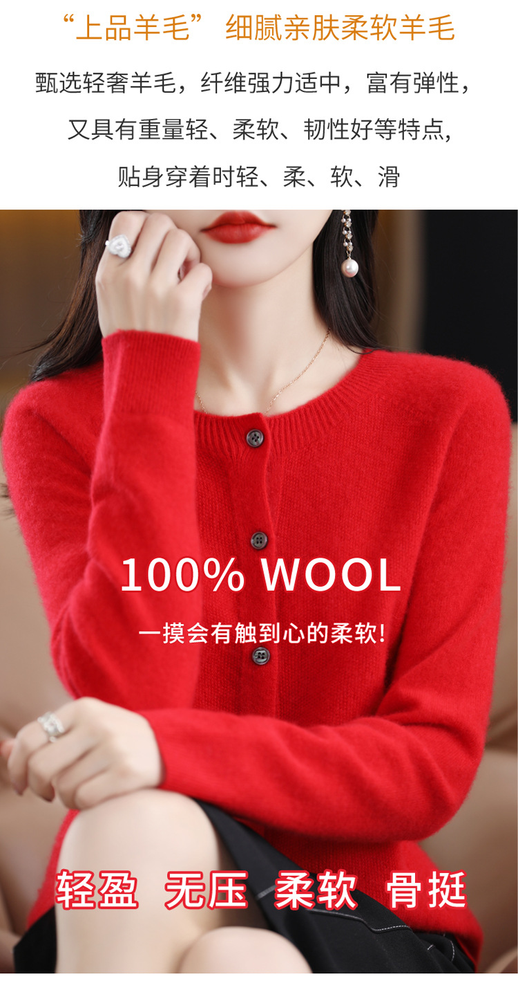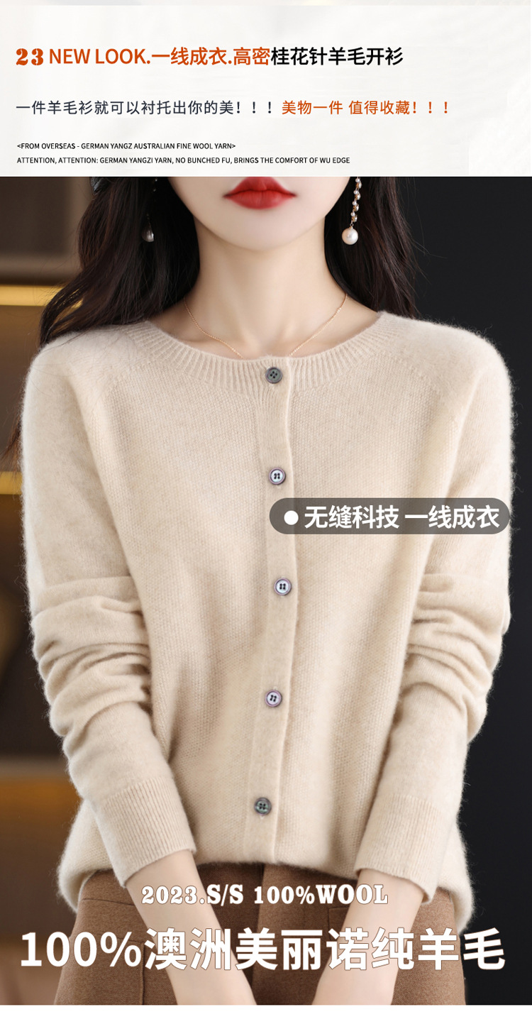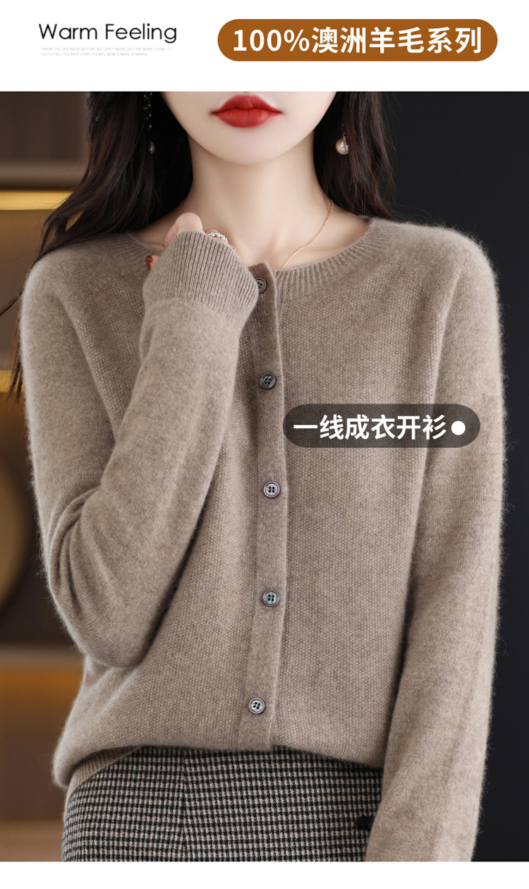 Готовый к ношению свитер из 100% шерсти первого линии, женский вязаный кардиган, тонкий свитер, верхняя одежда, осенне-зимний бесшовный топ с круглым вырезом