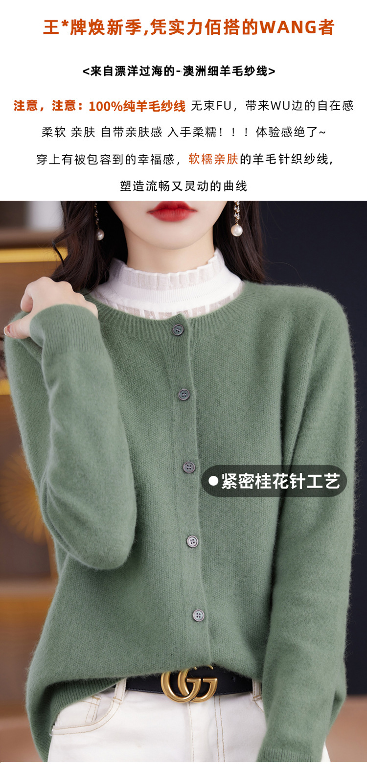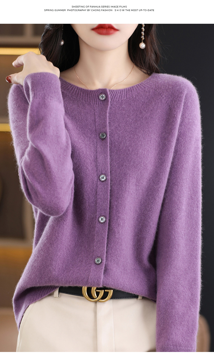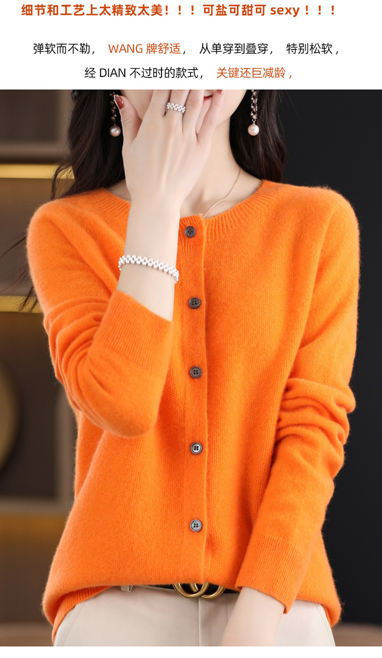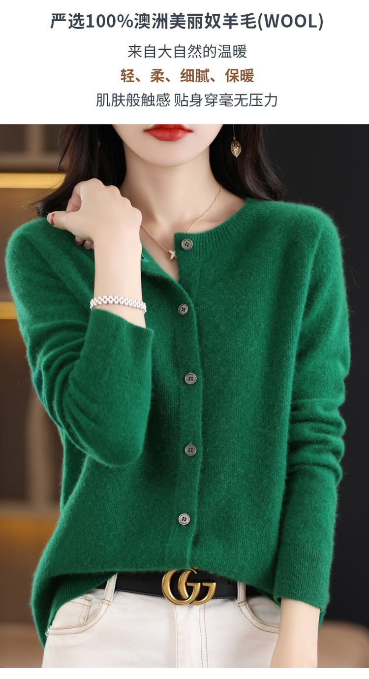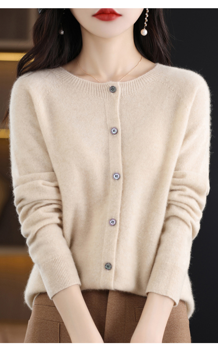 Готовый к ношению свитер из 100% шерсти первого линии, женский вязаный кардиган, тонкий свитер, верхняя одежда, осенне-зимний бесшовный топ с круглым вырезом