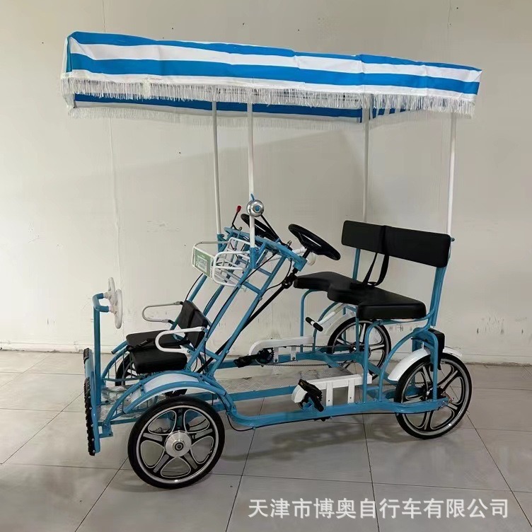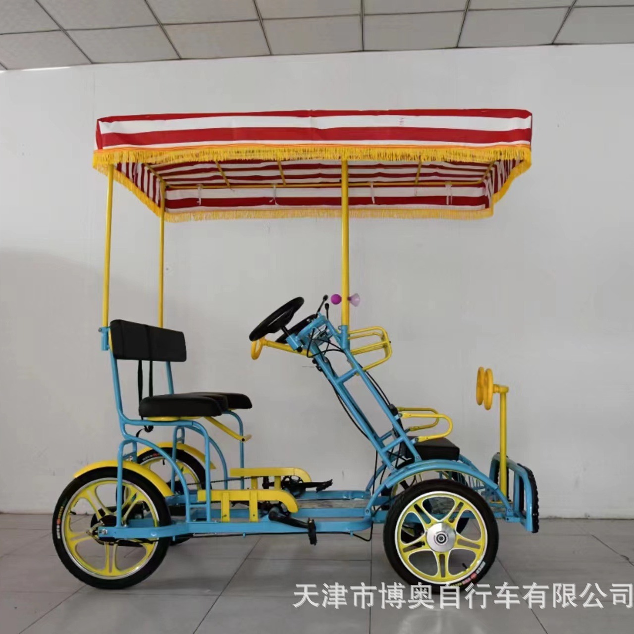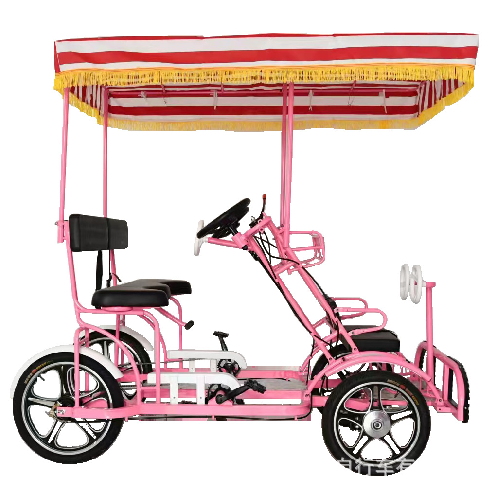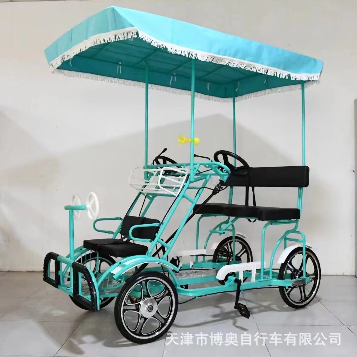 Четырехколесный тандемный велосипед для двух-четырех человек, семейный, с педальным приводом, специально для аренды в живописных районах, с рамой из высокоуглеродистой стали.