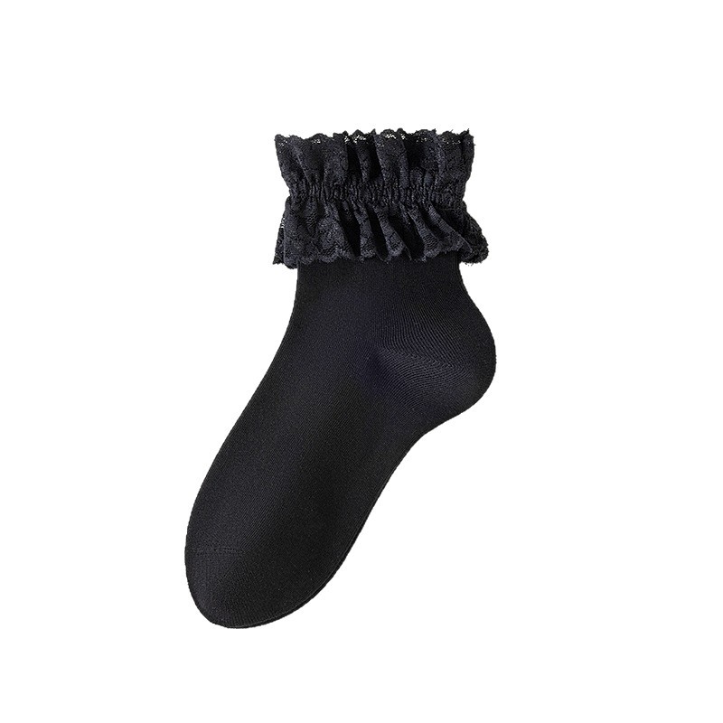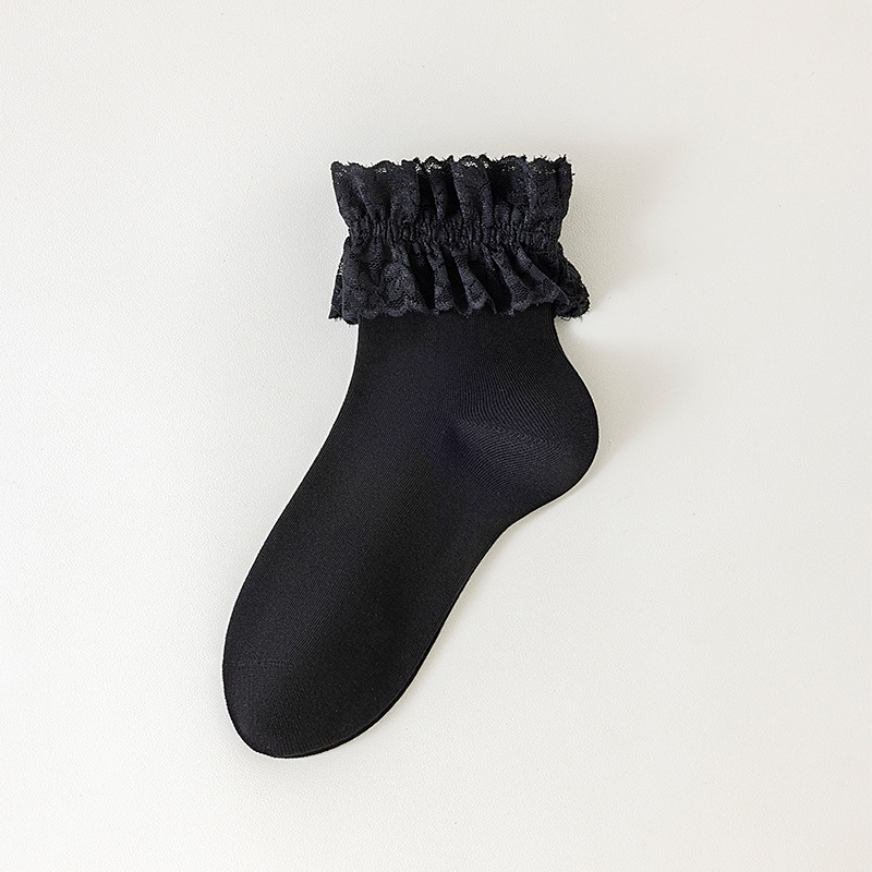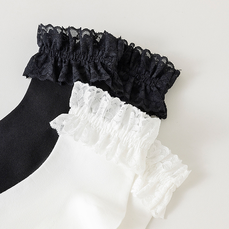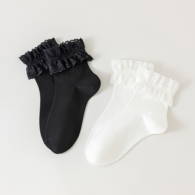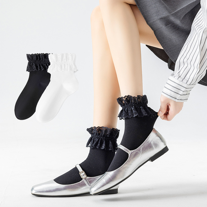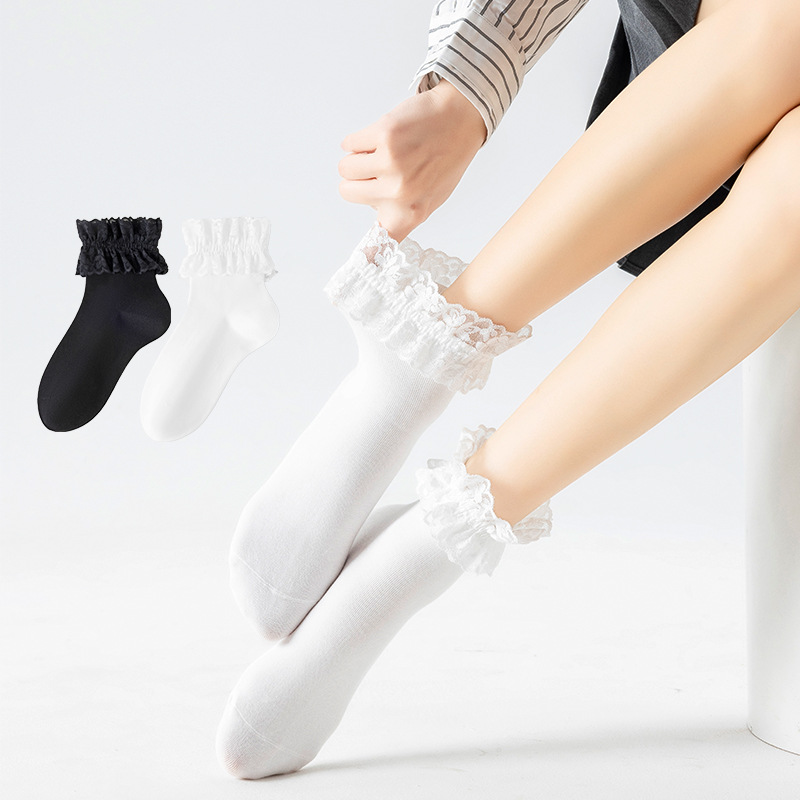 Новые кружевные женские однотонные носки средней длины в японском стиле В Стиле Лолита, черно-белые милые повседневные носки