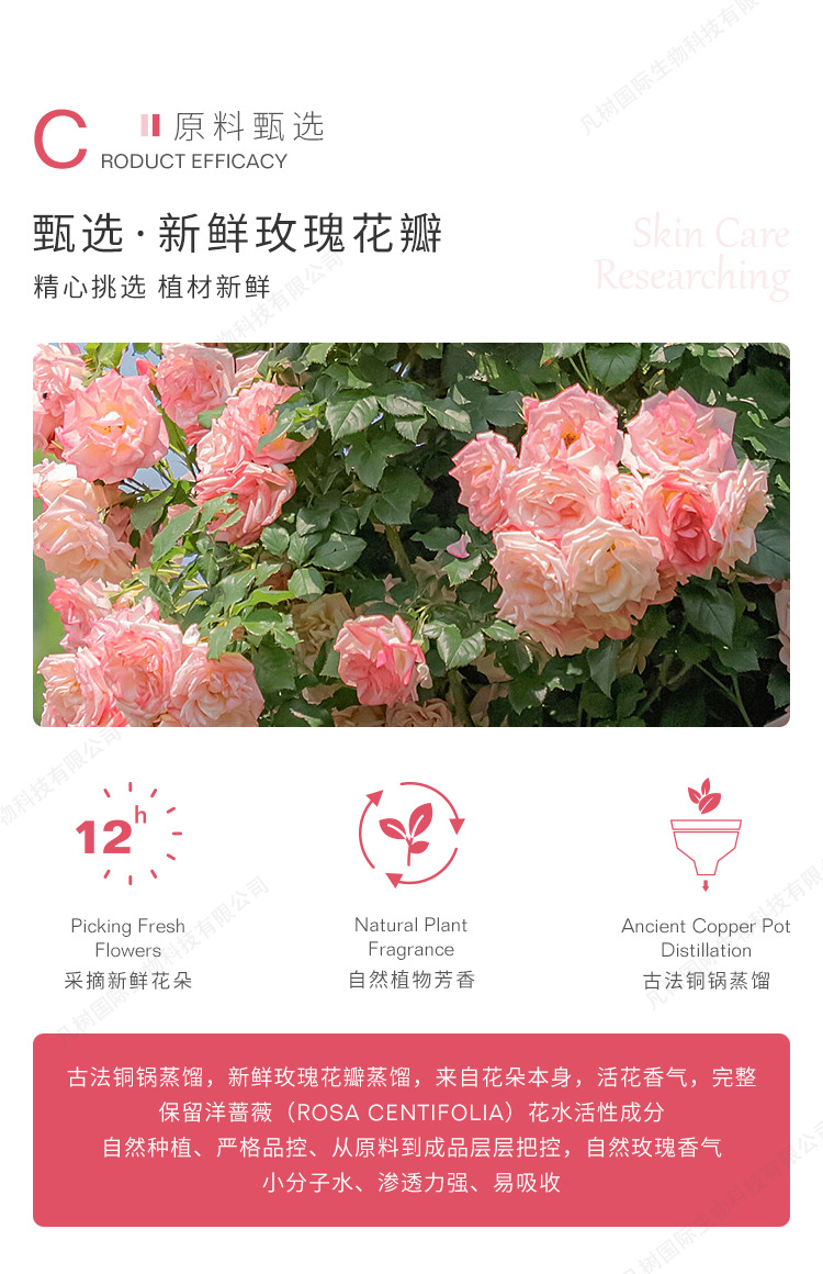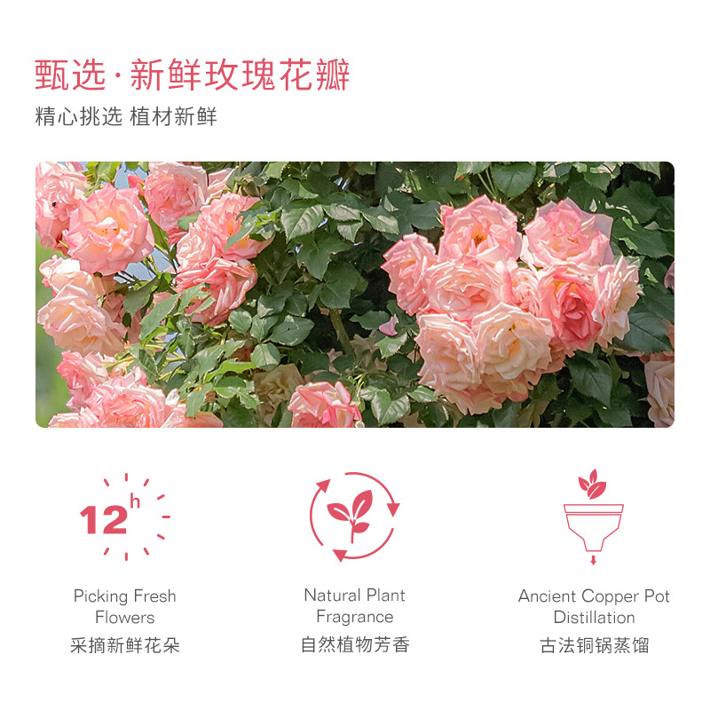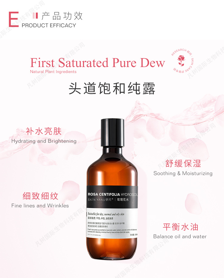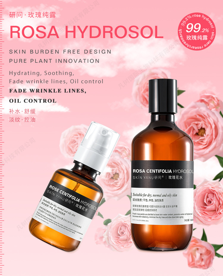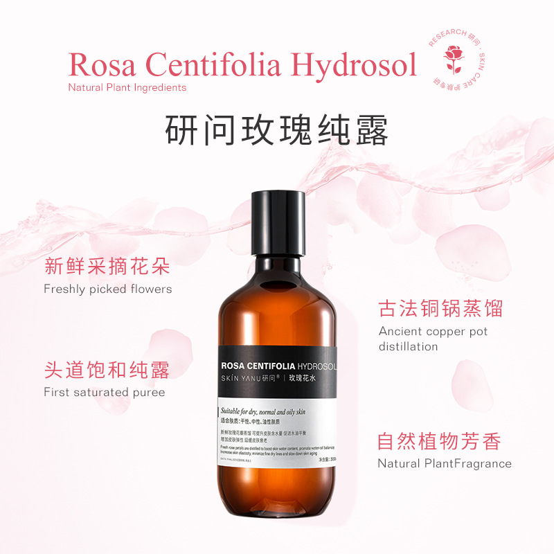 Гидролат розы: увлажняющий и питательный, успокаивающий и осветляющий, сияющий и матирующий тонер-эссенция, на основе насыщенной дистиллированной воды.