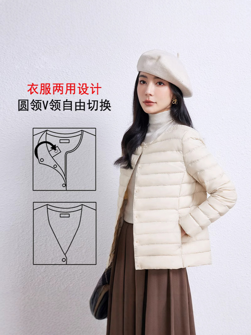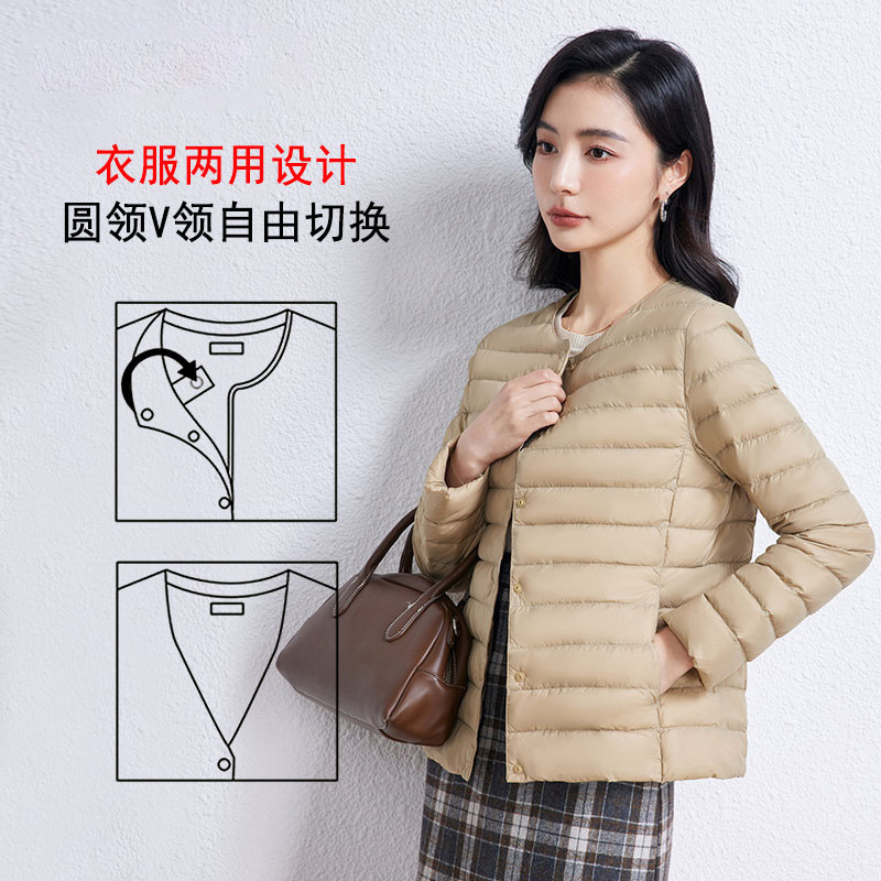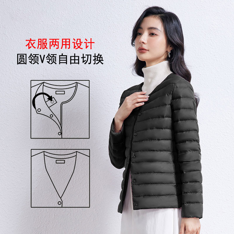Новый осенне-зимний легкий пуховик с v-образным вырезом на подкладке, женский короткий круглый вырез с длинными рукавами, большой размер, внутренняя одежда, внешний теплый жилет