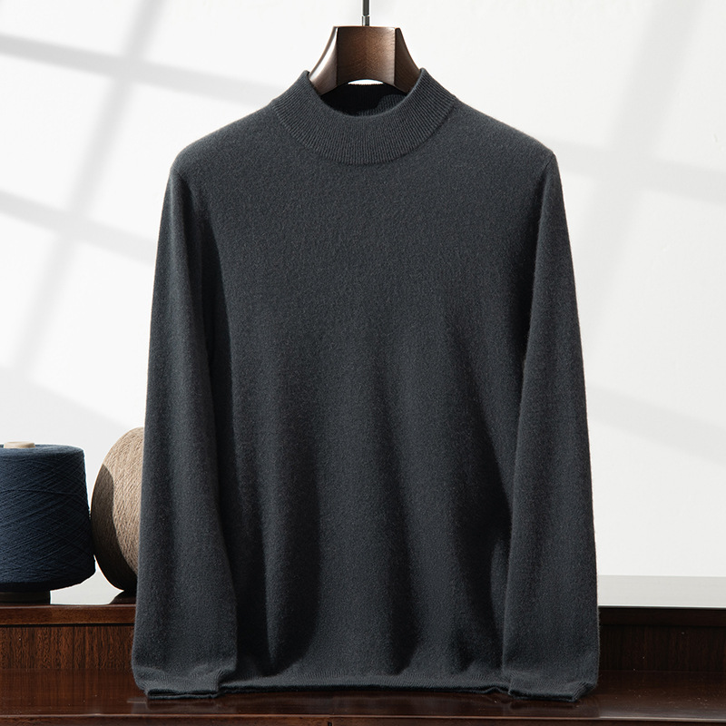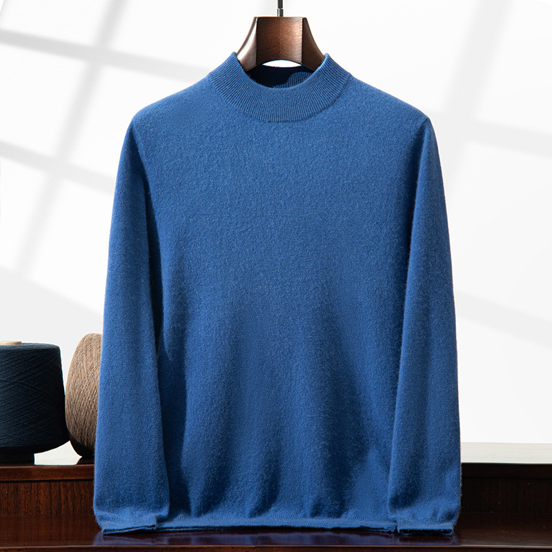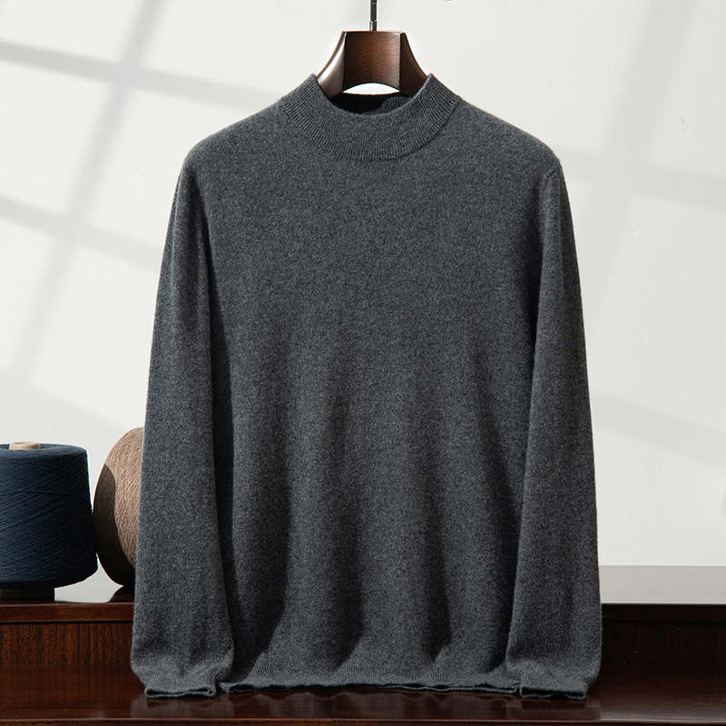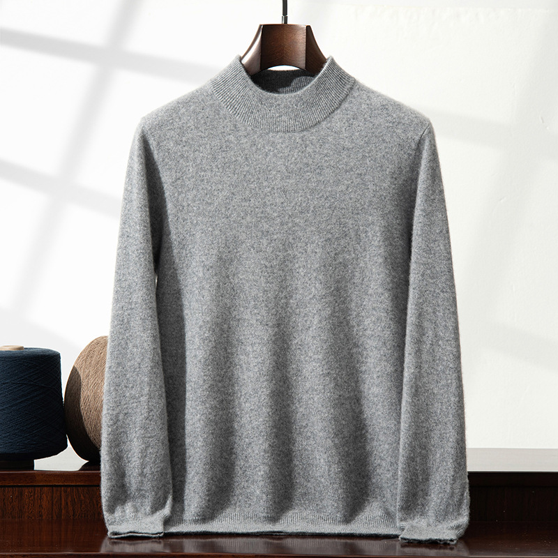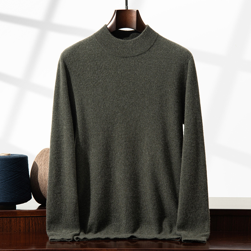Мужской кашемировый свитер с полувысоким воротником, круглым вырезом, свободного кроя, универсальный, полностью из кашемира, с длинными рукавами, вязаный, для осени и зимы.