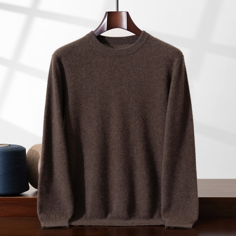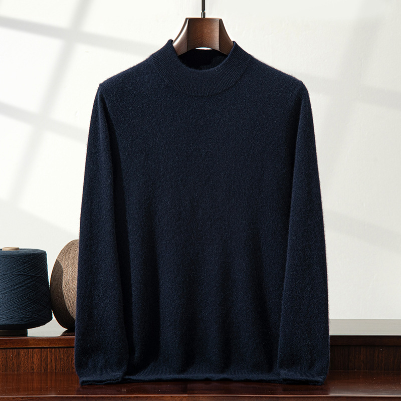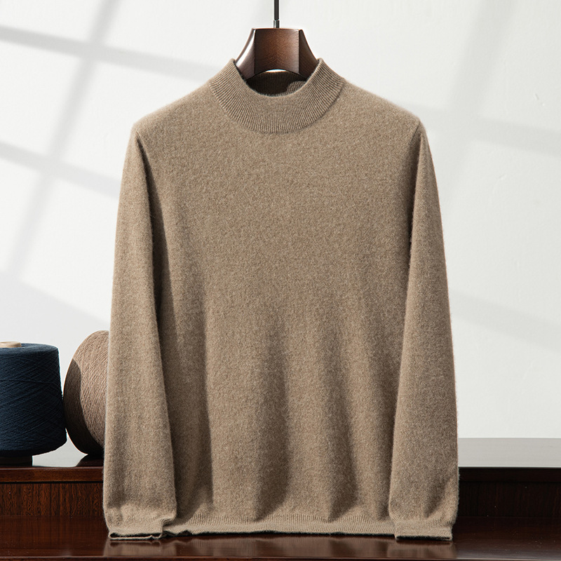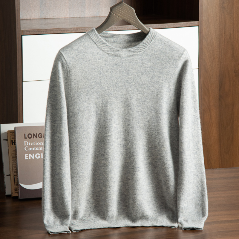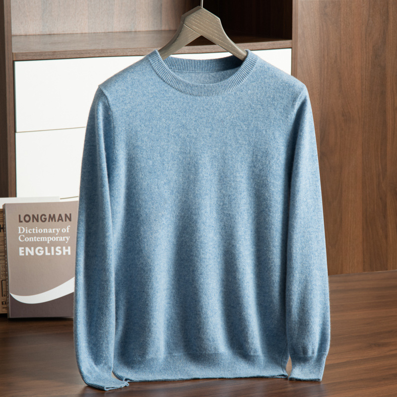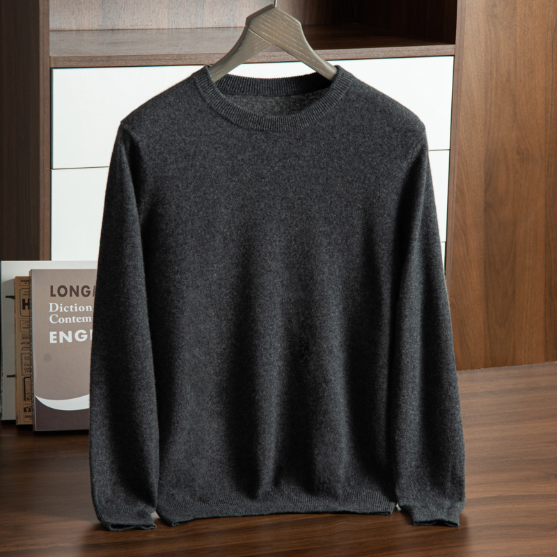 Мужской кашемировый свитер с полувысоким воротником, круглым вырезом, свободного кроя, универсальный, полностью из кашемира, с длинными рукавами, вязаный, для осени и зимы.
