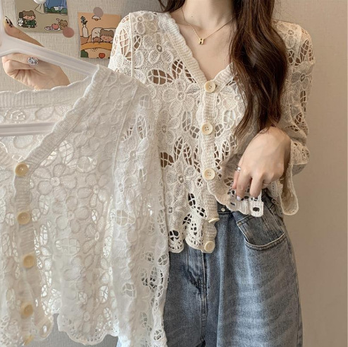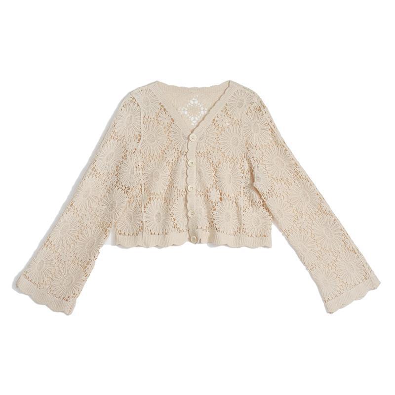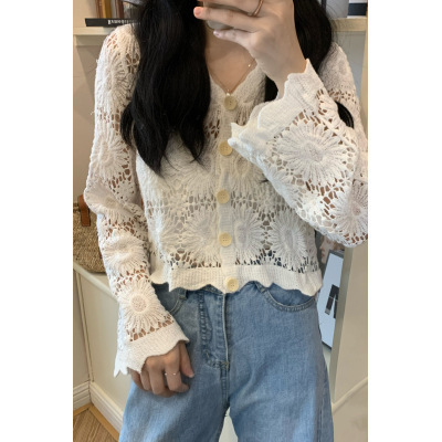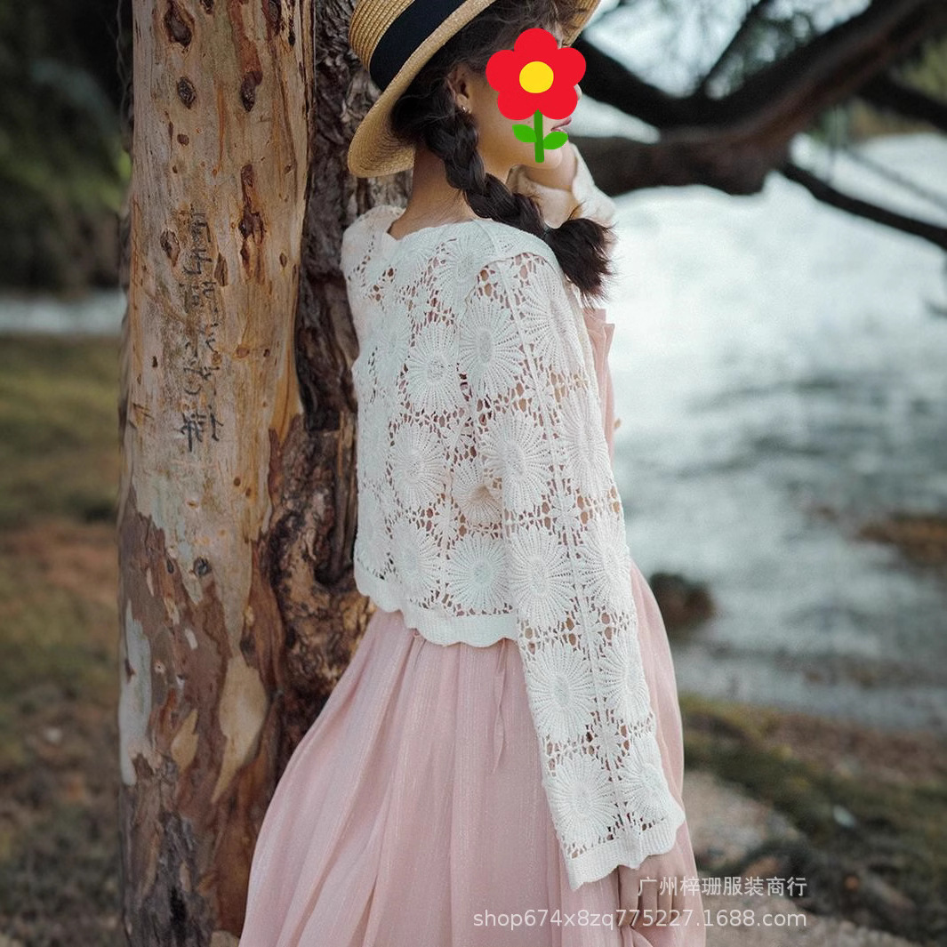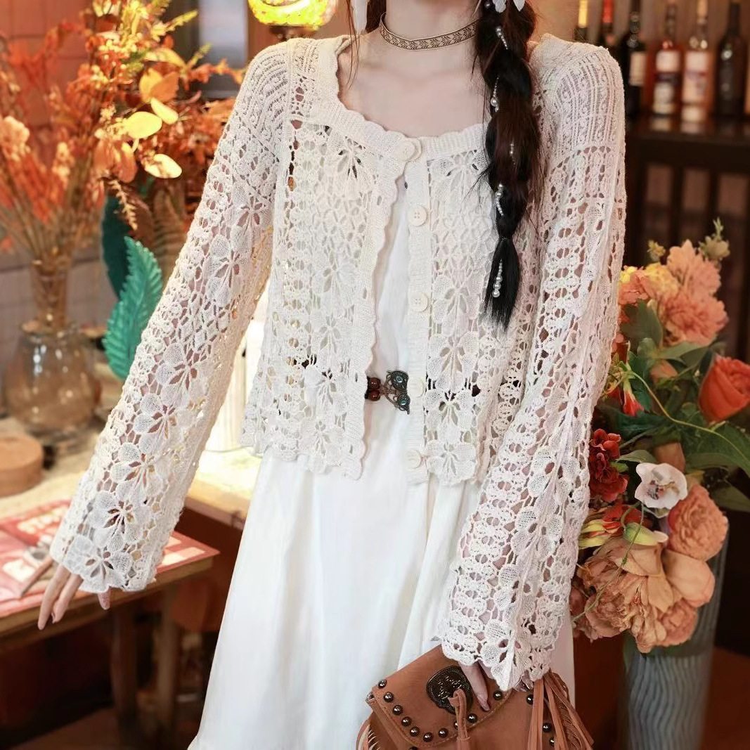 Свободный полый вязаный свитер, короткий кардиган, на весну и лето, подходящая юбка для защиты от солнца, маленькое пальто, элегантный наряд с длинным рукавом для женщин