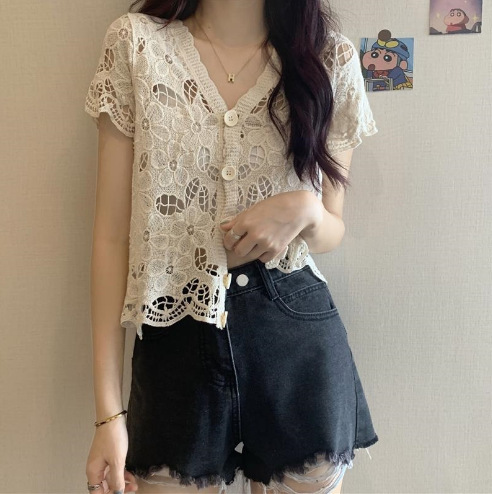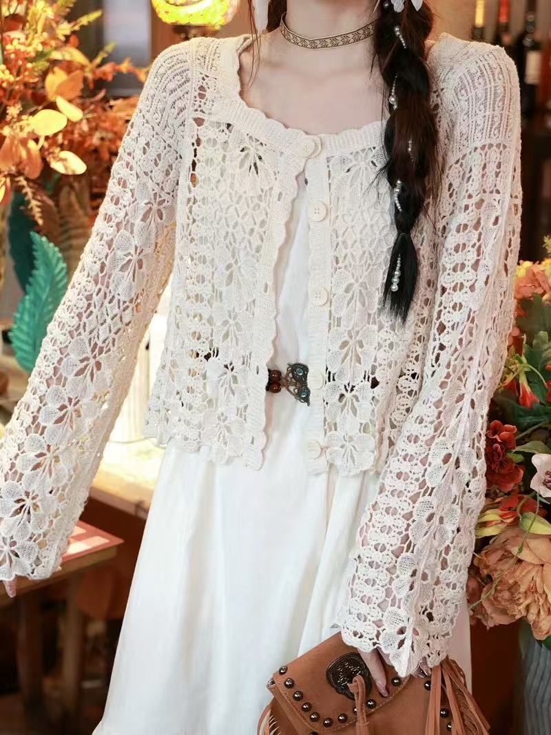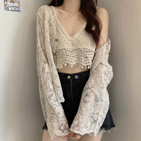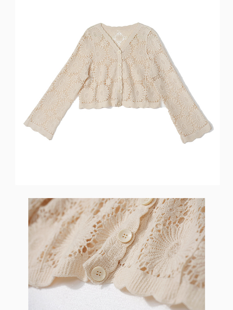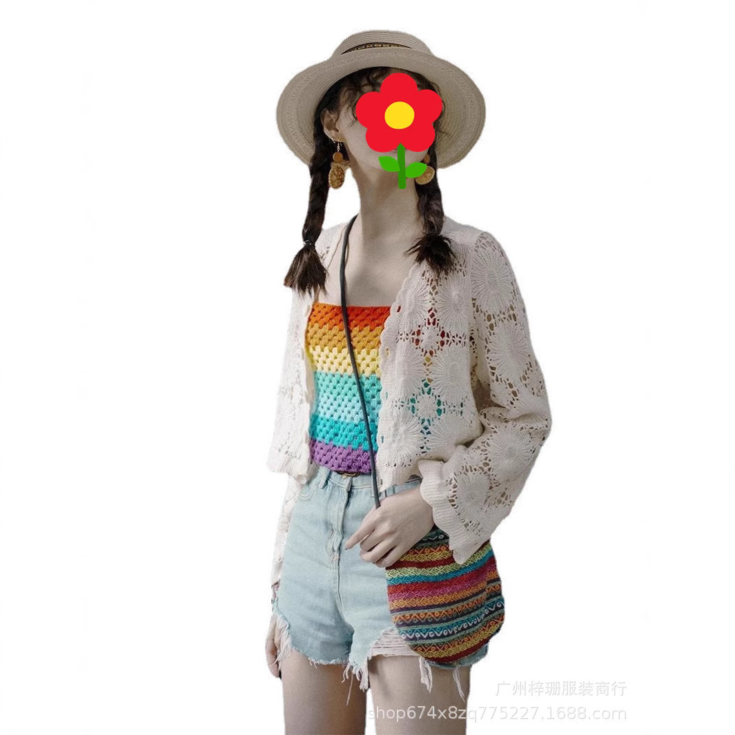 Свободный полый вязаный свитер, короткий кардиган, на весну и лето, подходящая юбка для защиты от солнца, маленькое пальто, элегантный наряд с длинным рукавом для женщин