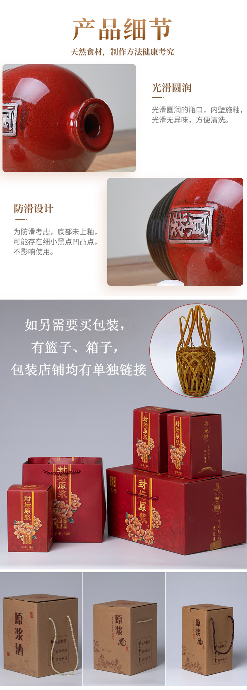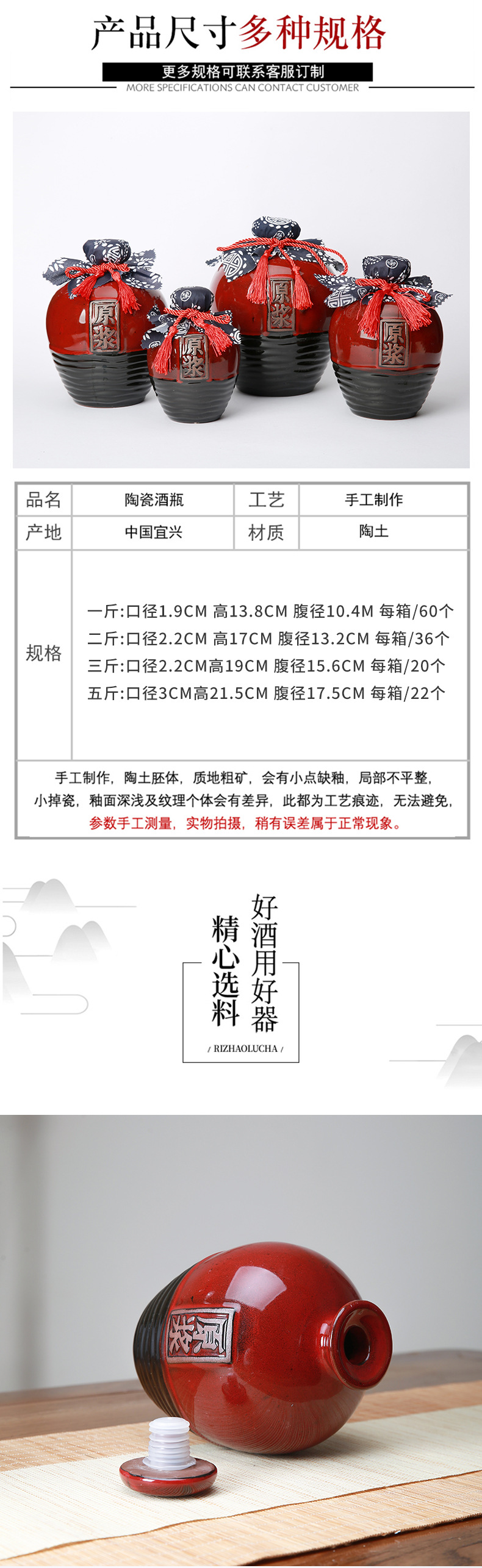 Керамическая бутылка вина Yixing Баночка для белого вина 1 Джин 2 Джин 3 Джин 5 Джин Оригинальная целлюлоза Земля Керамическая банка для вина Пустая бутылка Красная