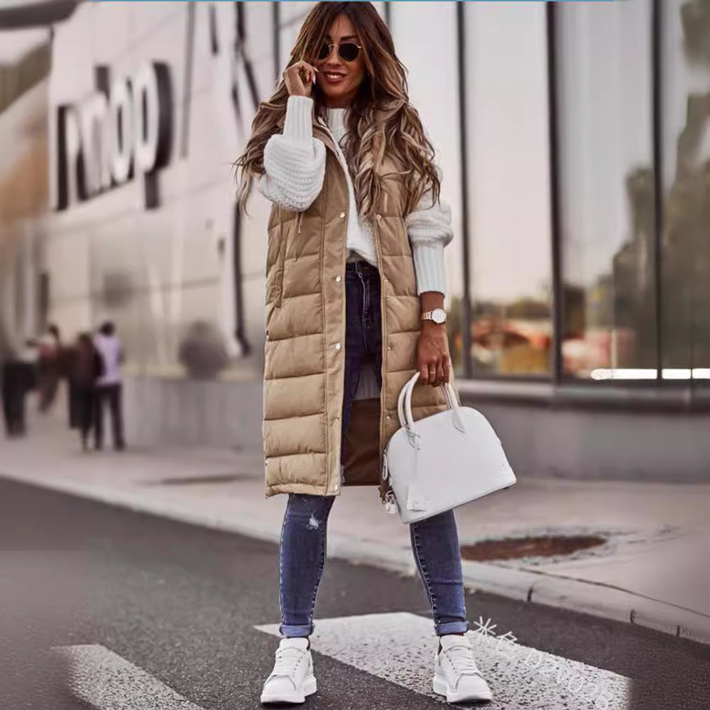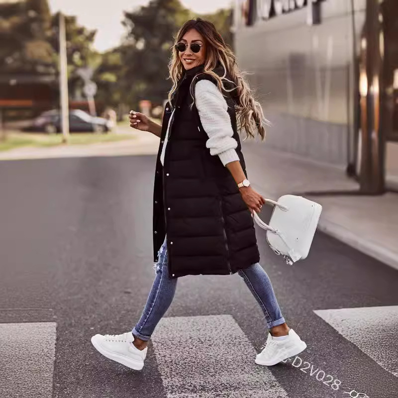 2021 желаю, чтобы Европейская и американская однотонная однобортная куртка средней длины с хлопковой подкладкой с капюшоном, жилет, облегающий элегантный кардиган, пальто, Топ