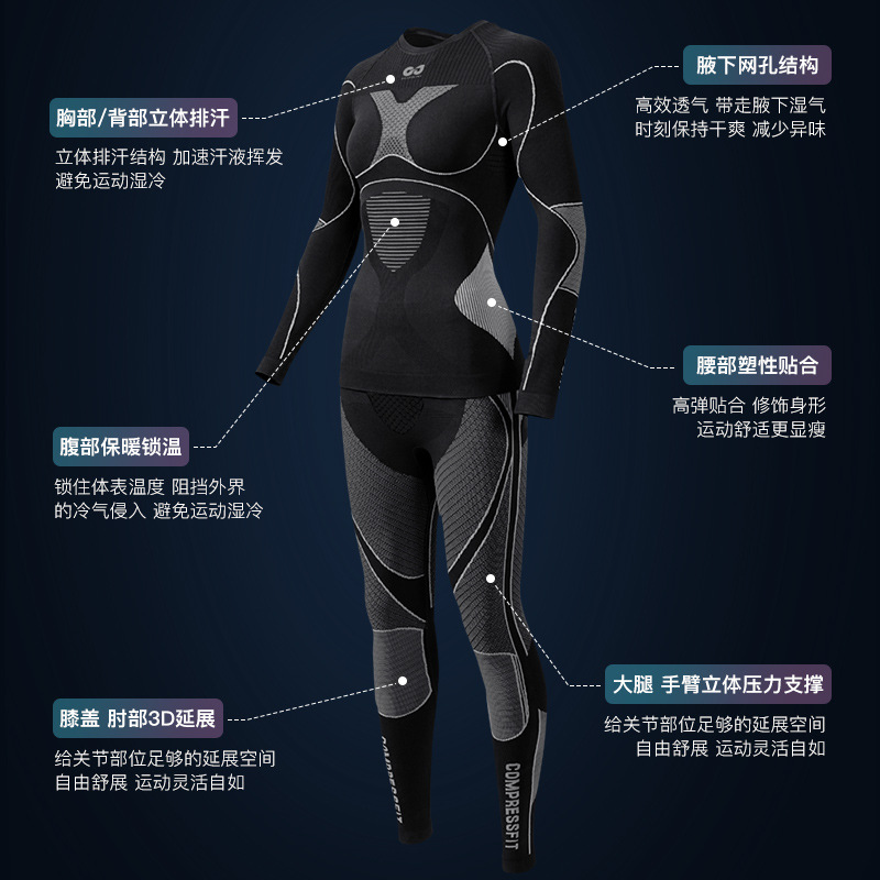 Осенняя и зимняя лыжная одежда для мужчин и женщин на открытом воздухе Спортивный спорт на открытом воздухе Сжатие термобелье нижнее белье комплект SGY01