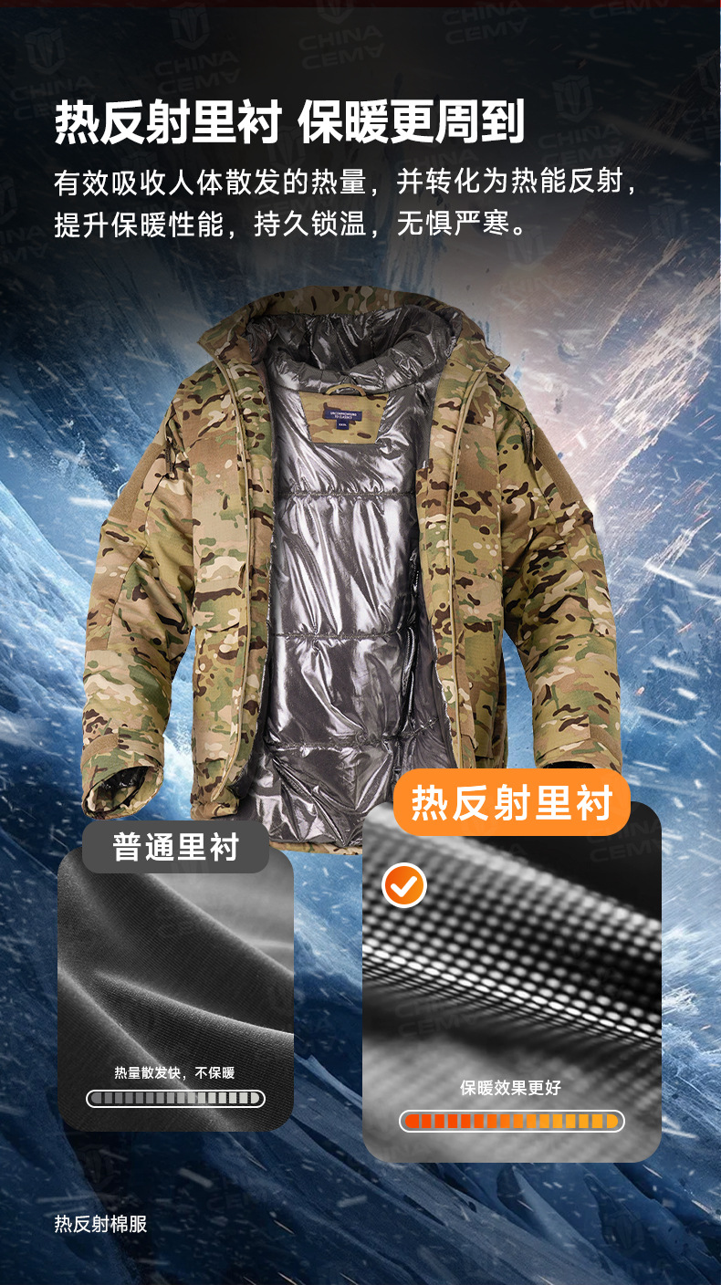 Утолщенная термоотражающая куртка с хлопковой подкладкой, камуфляжная зимняя теплая ветрозащитная морозостойкая куртка с хлопковой подкладкой, камуфляжная уличная тактическая Функциональная одежда