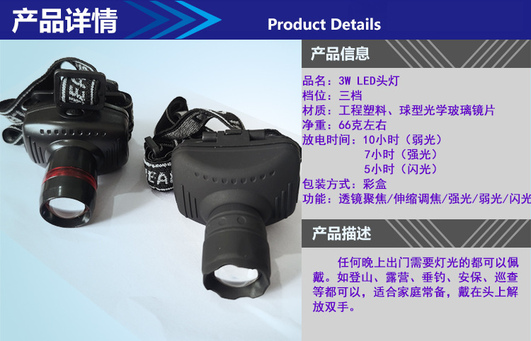Гладкий матовый налобный фонарь 3WLED, трехскоростной Телескопический/зум-светильник, 1 Вт, перезаряжаемый налобный фонарь для рыбалки, ночная рыбалка, легкие рыболовные снасти