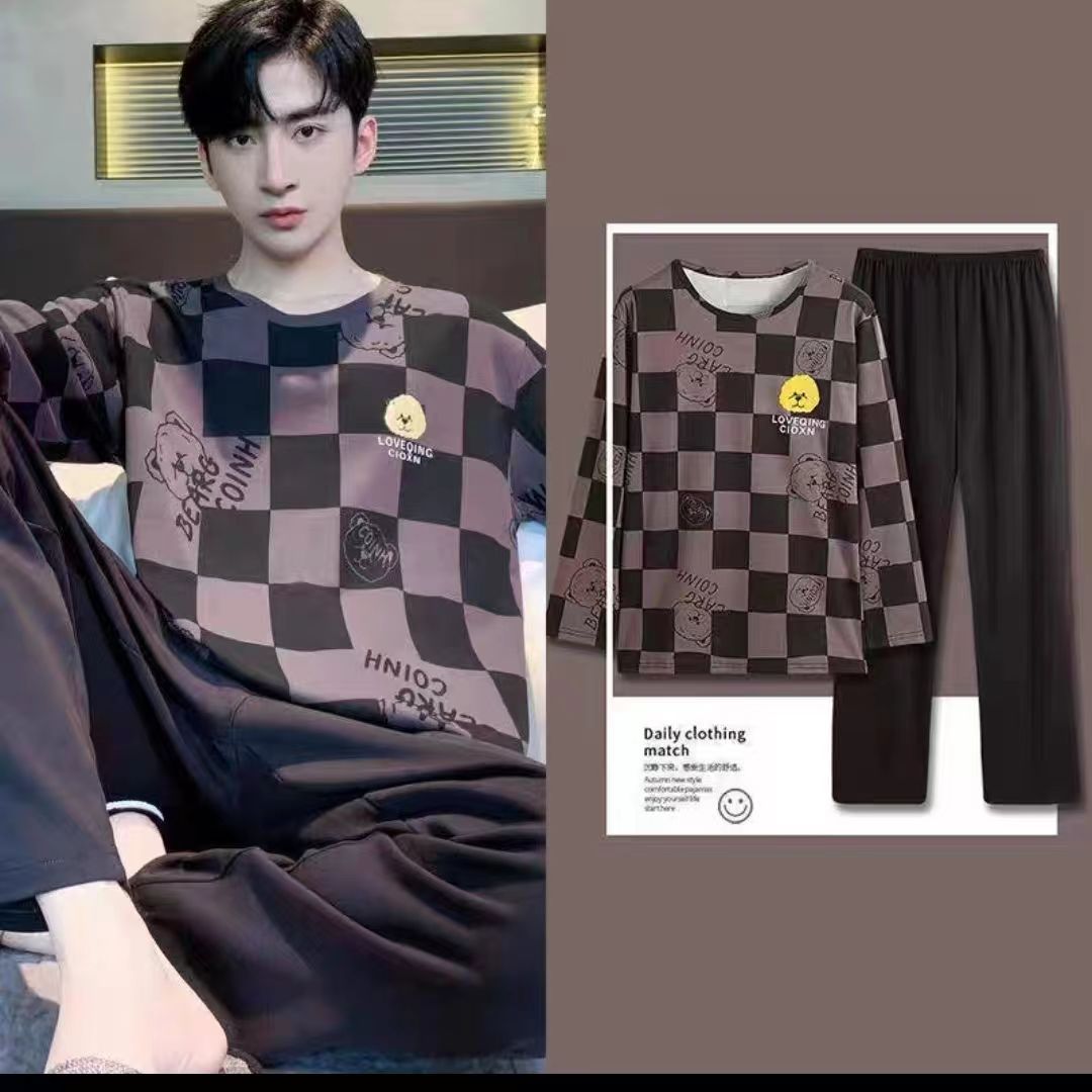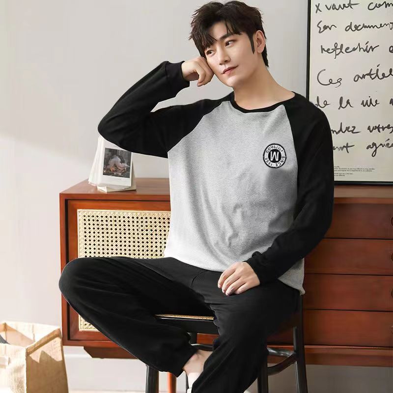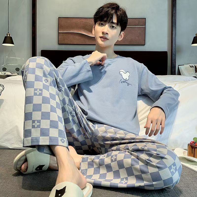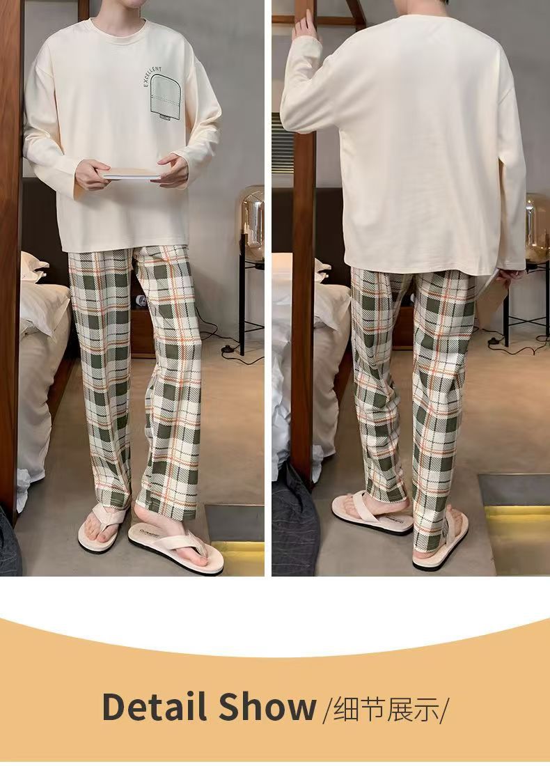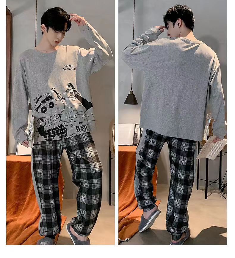 Пижама, мужские брюки с длинными рукавами, весна и осень, простая повседневная зимняя домашняя одежда для молодых мужчин, костюм, верхняя одежда