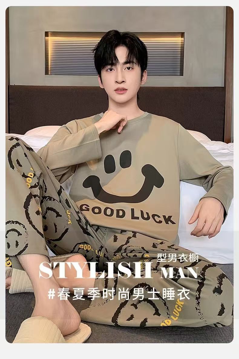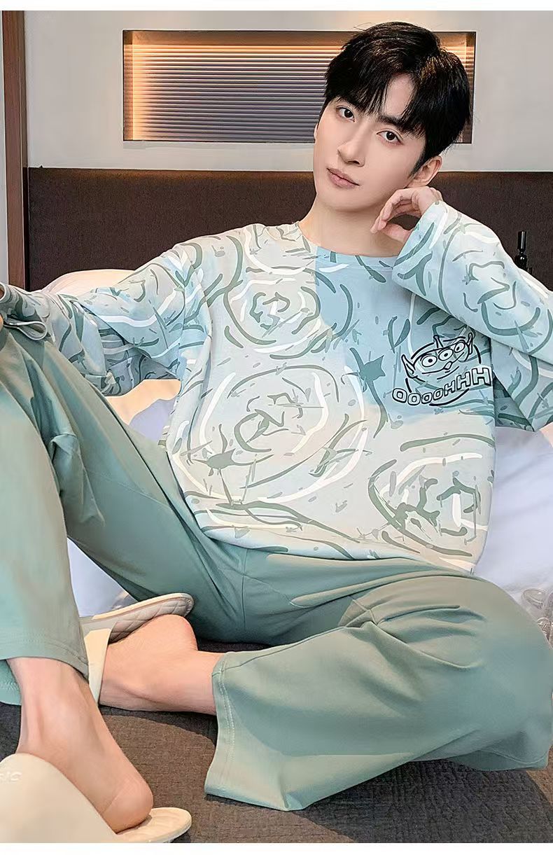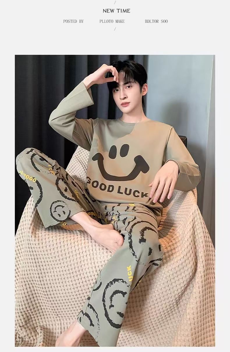 Пижама, мужские брюки с длинными рукавами, весна и осень, простая повседневная зимняя домашняя одежда для молодых мужчин, костюм, верхняя одежда