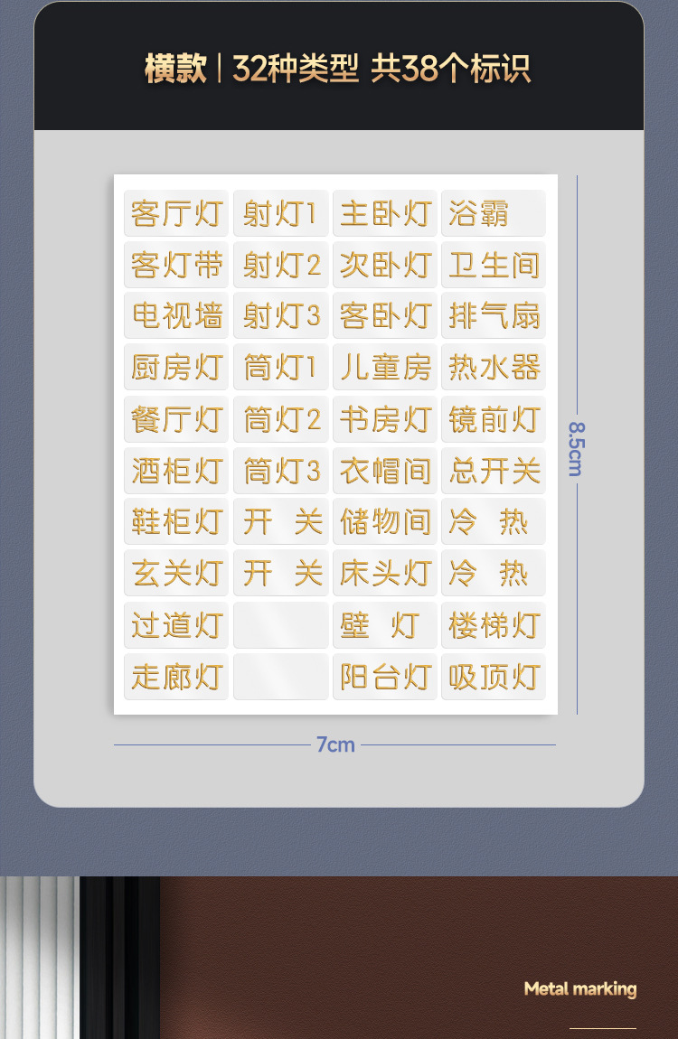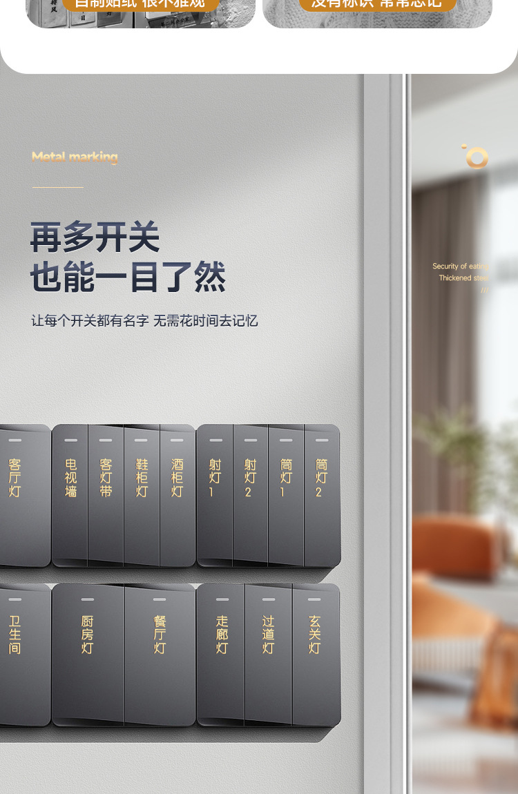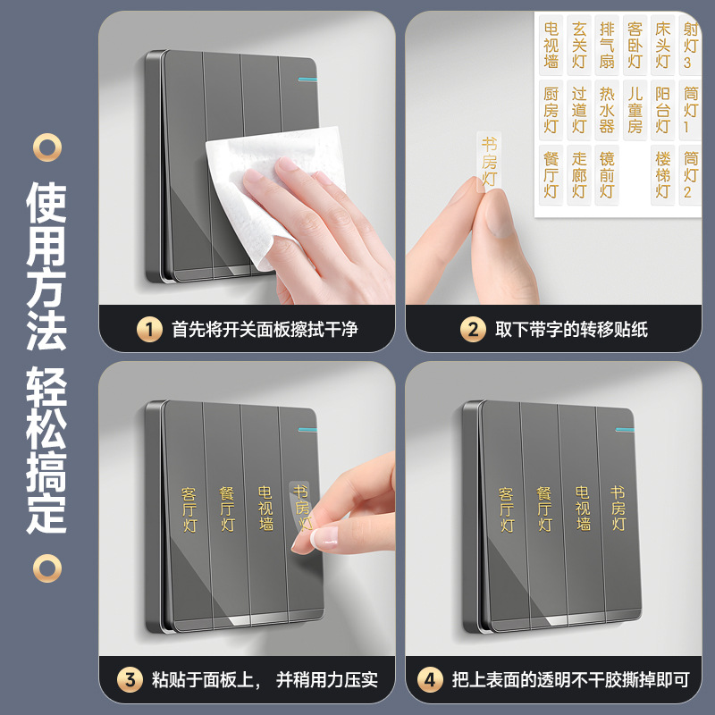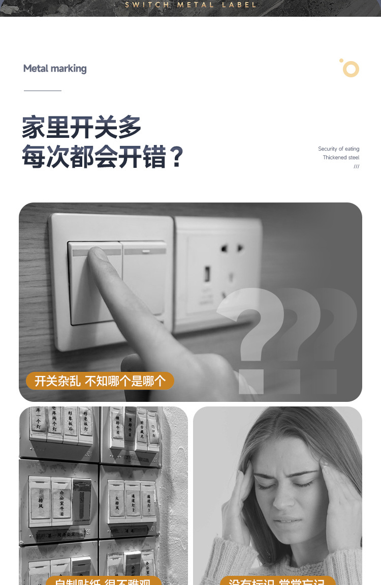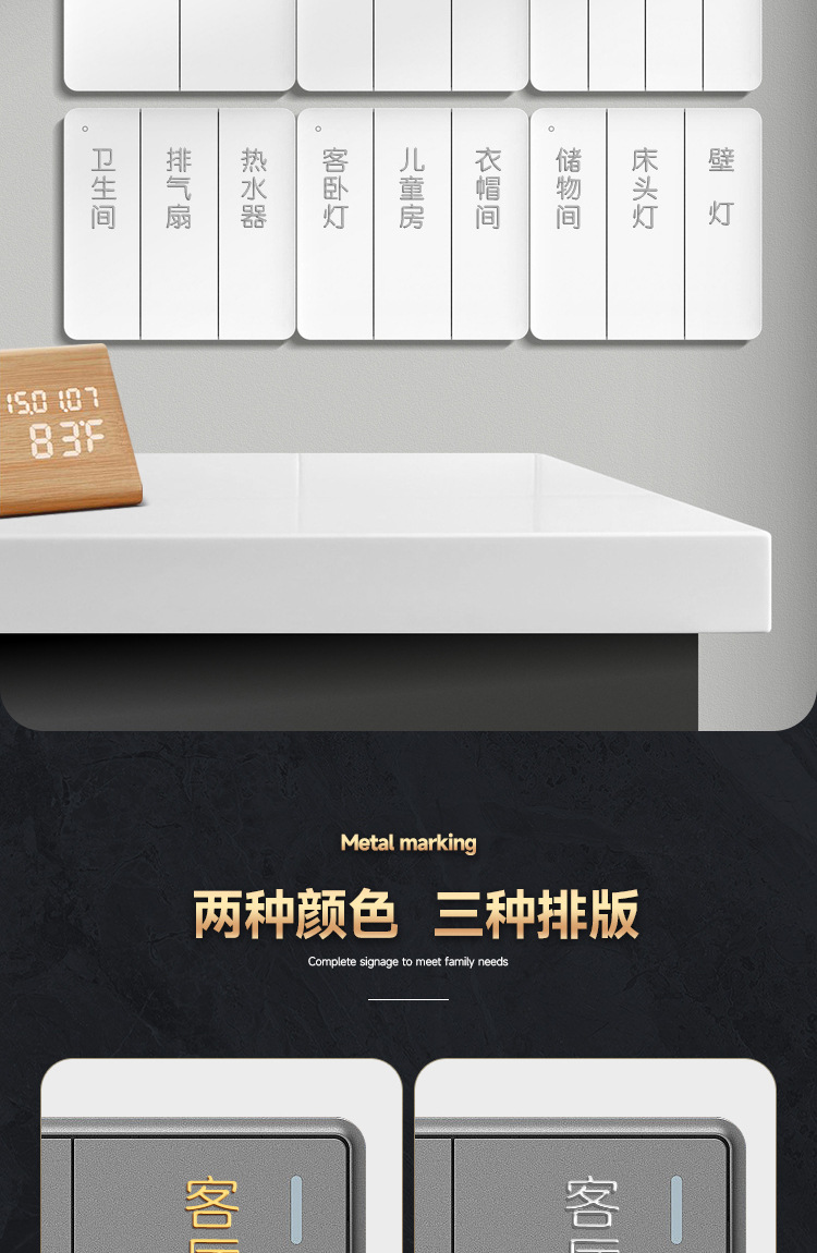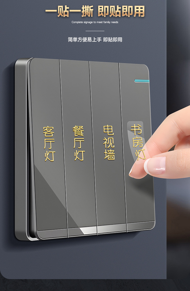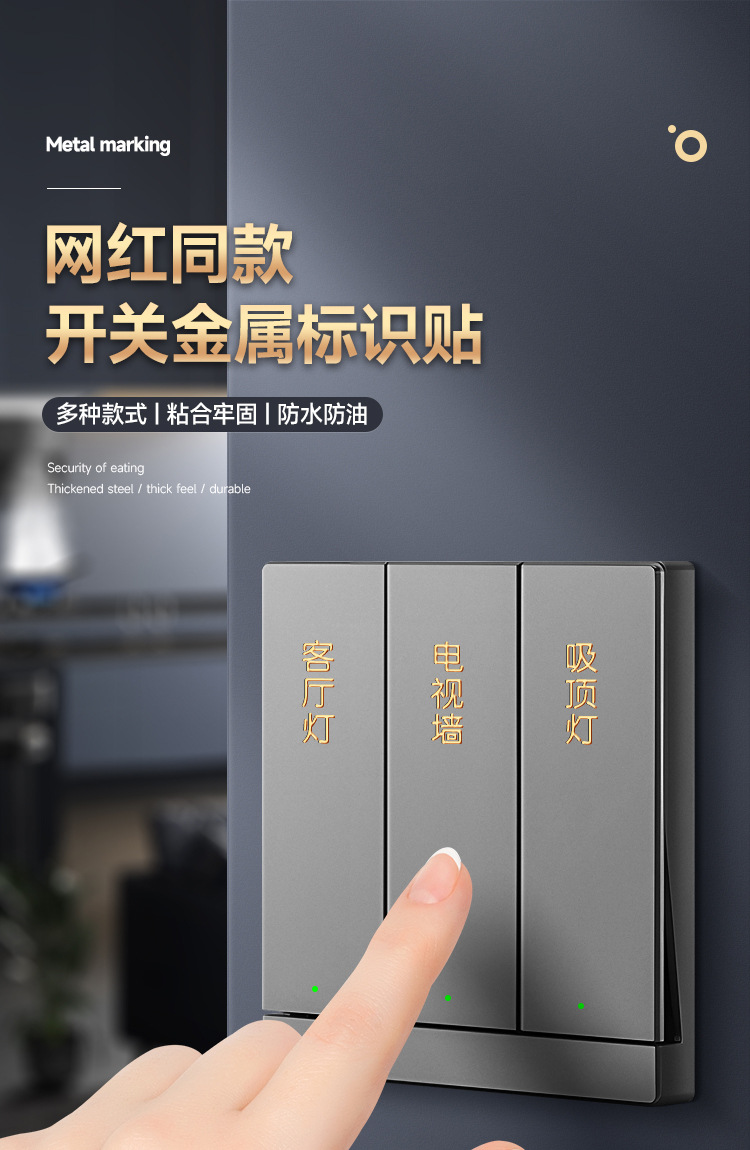 Металлическая декоративная наклейка для выключателя, простая и креативная наклейка-напоминание, наклейка в стиле лайт-люкс, наклейка для выключателя со съемной пленкой и надписью.