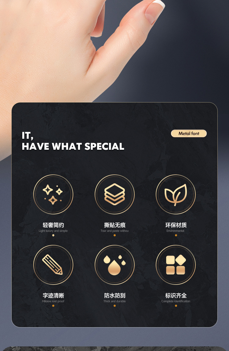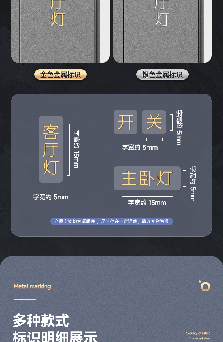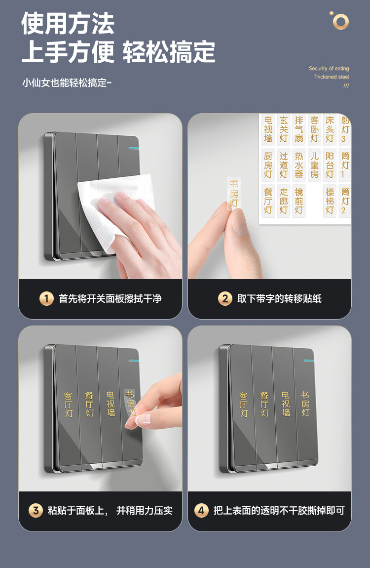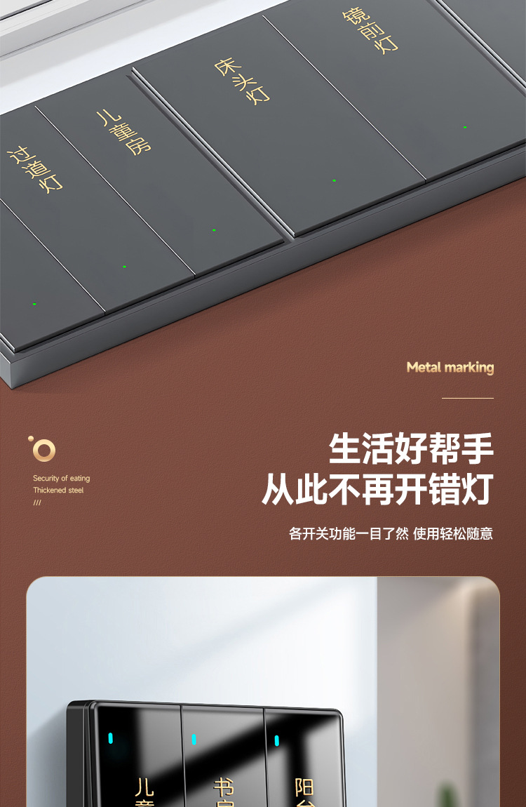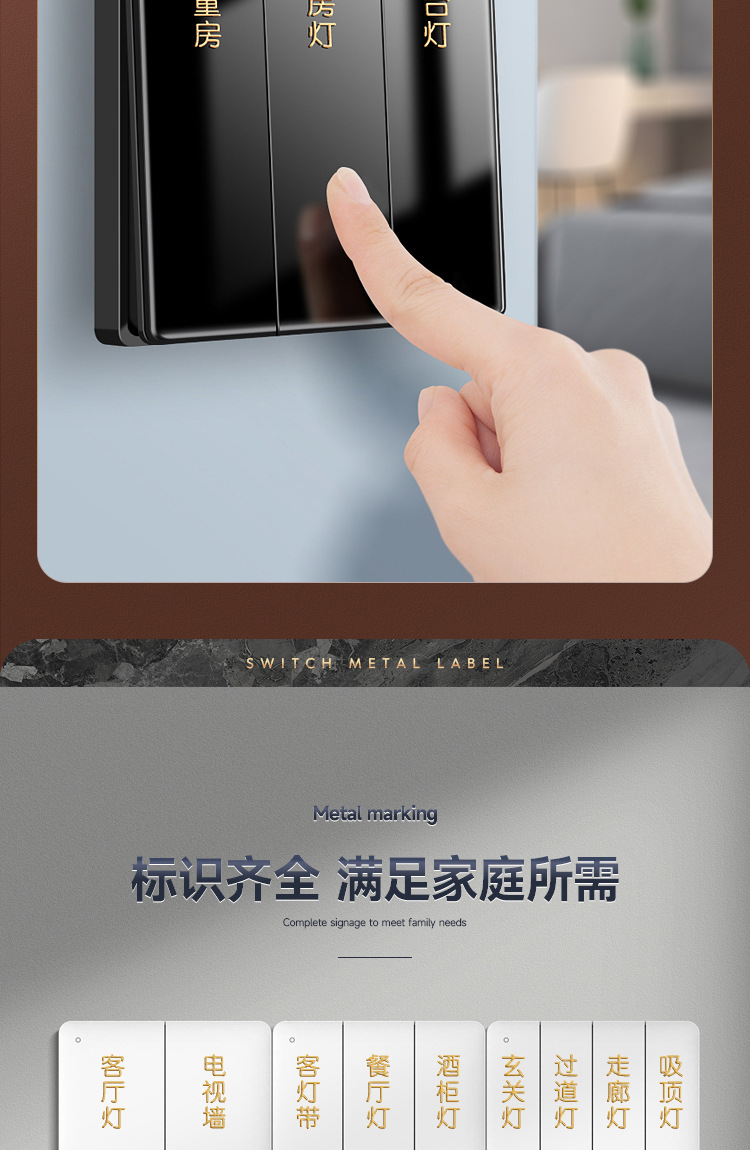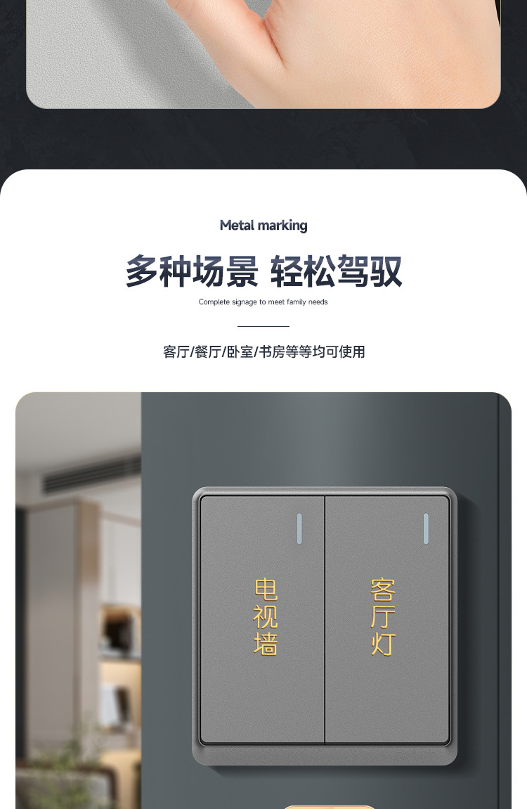 Металлическая декоративная наклейка для выключателя, простая и креативная наклейка-напоминание, наклейка в стиле лайт-люкс, наклейка для выключателя со съемной пленкой и надписью.