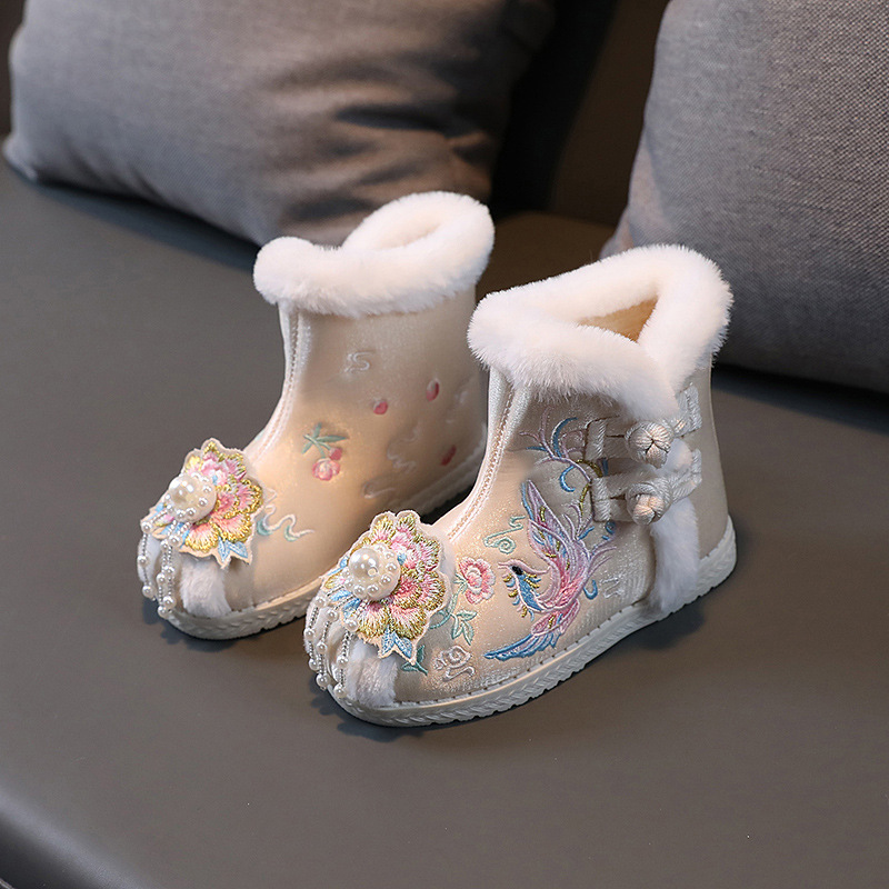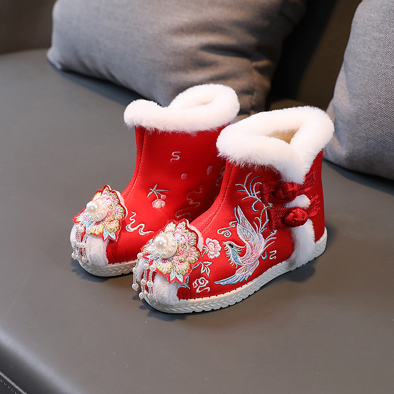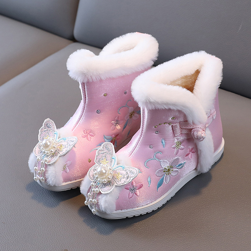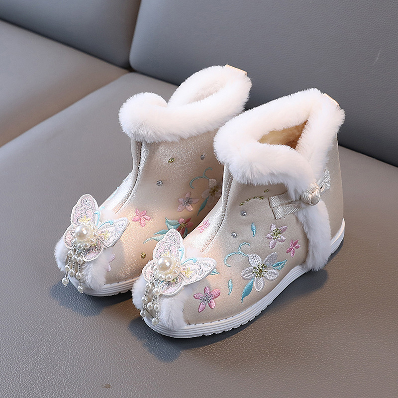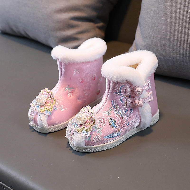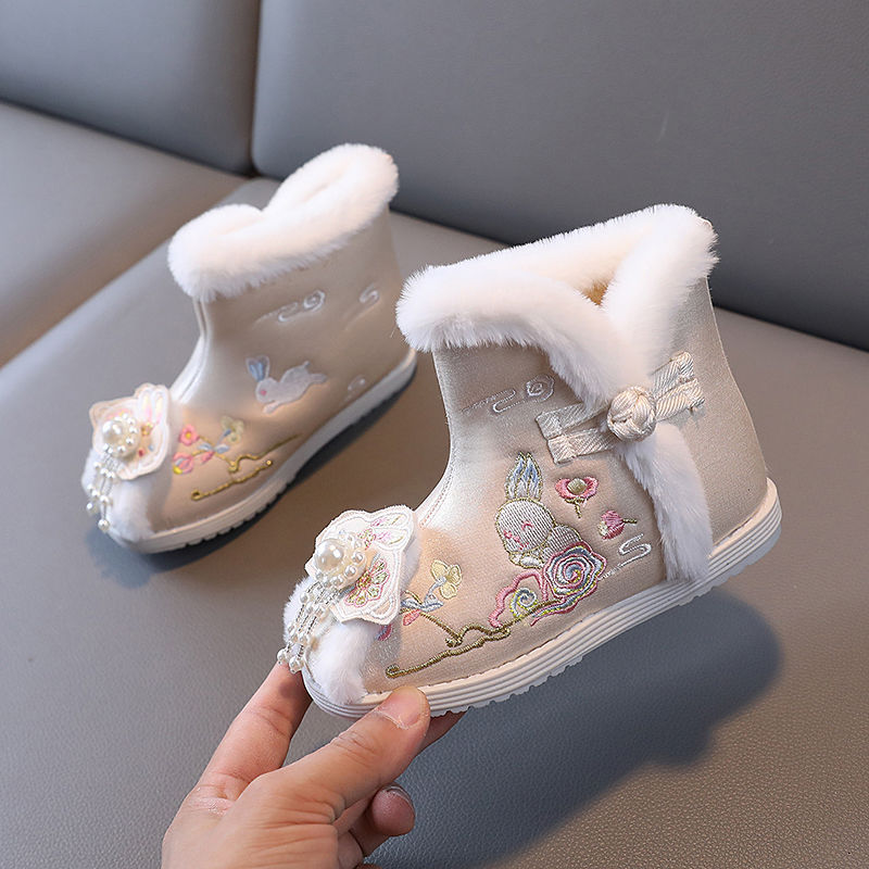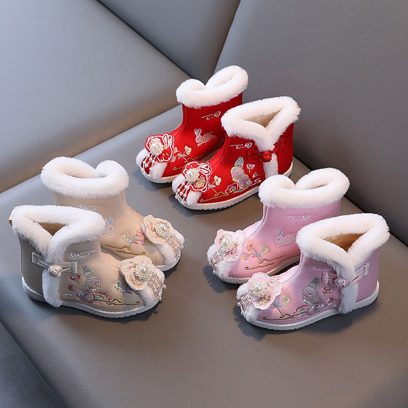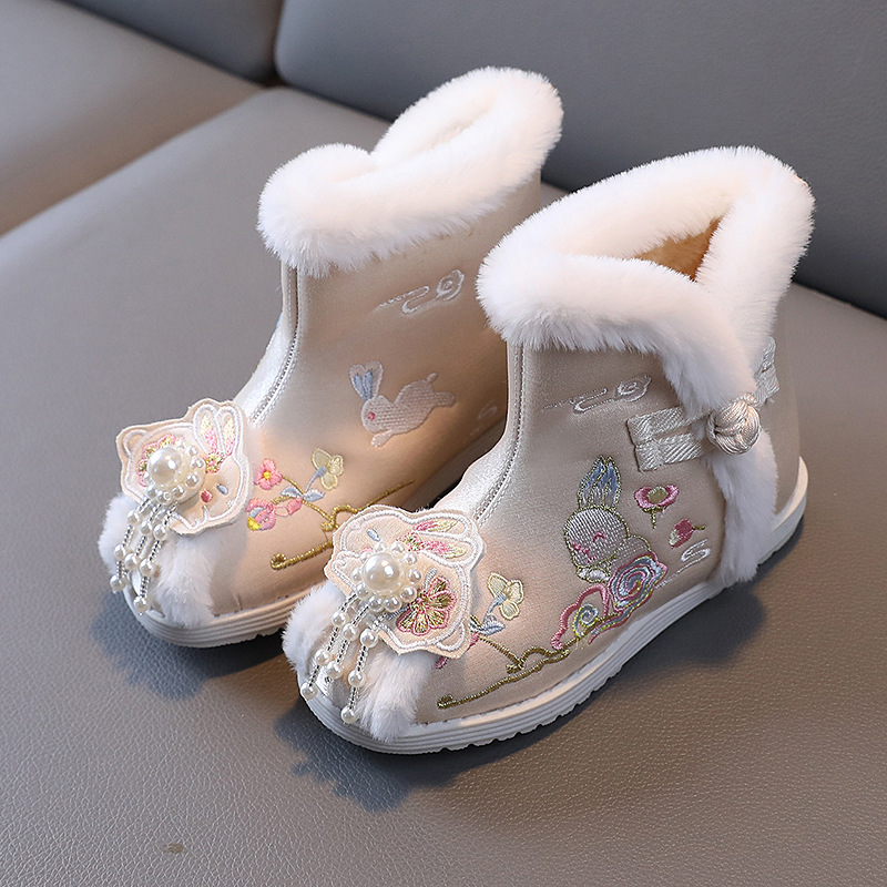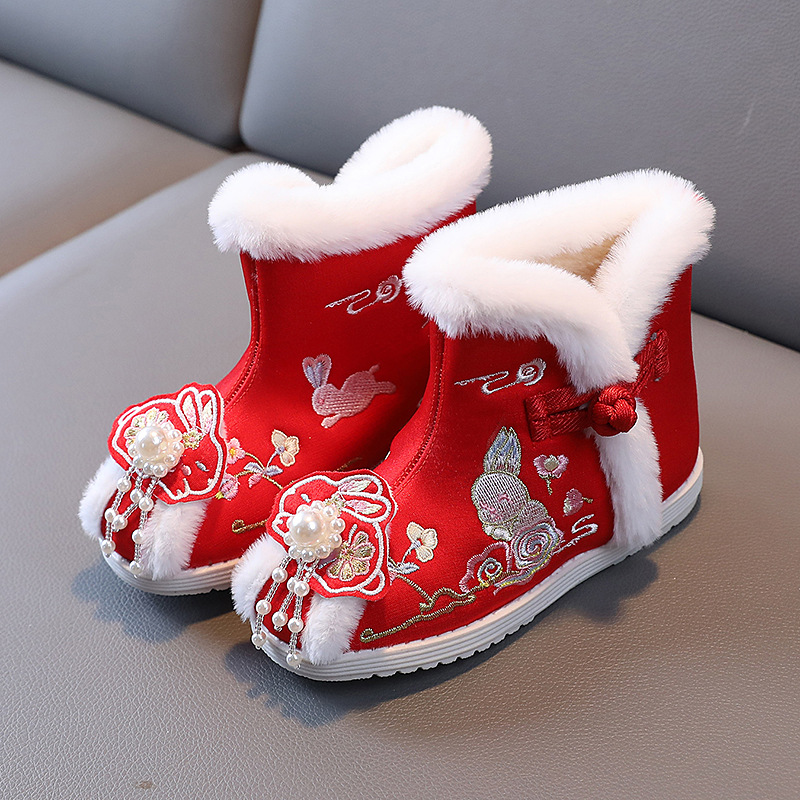 Обувь с вышивкой для девочек, детская обувь ханьфу, детские зимние сапоги в этническом стиле в кроличьем стиле, детский старинный костюм, хлопковая обувь в китайском стиле