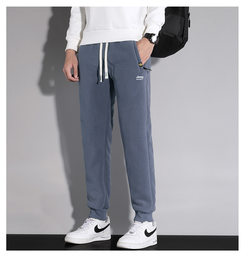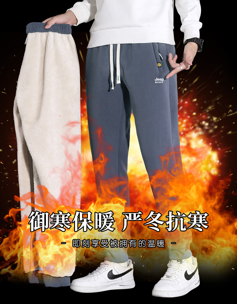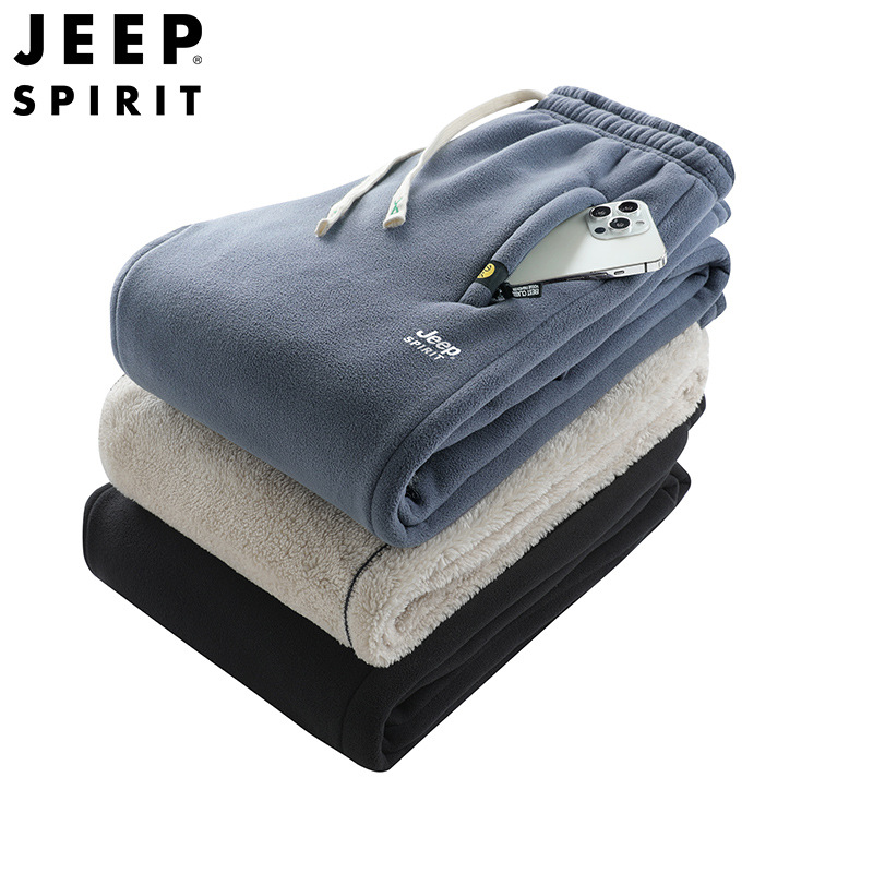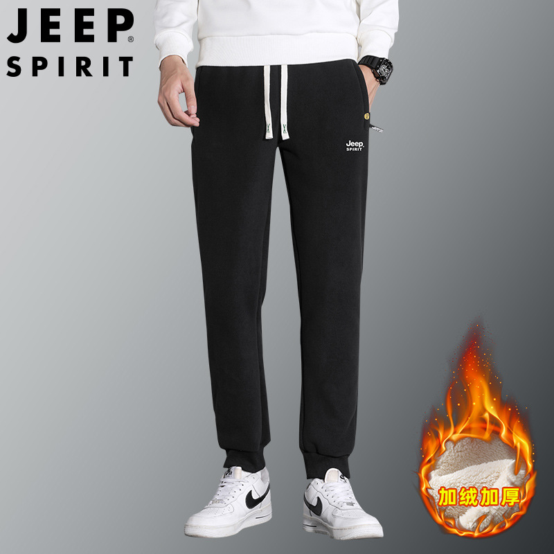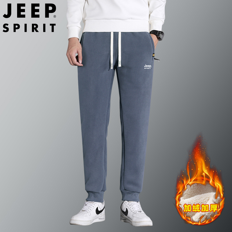 JEEP SPIRIT мужские повседневные брюки из плотного флиса с кашемировым поясом свободные осенне-зимние брюки на флисовой подкладке 7441