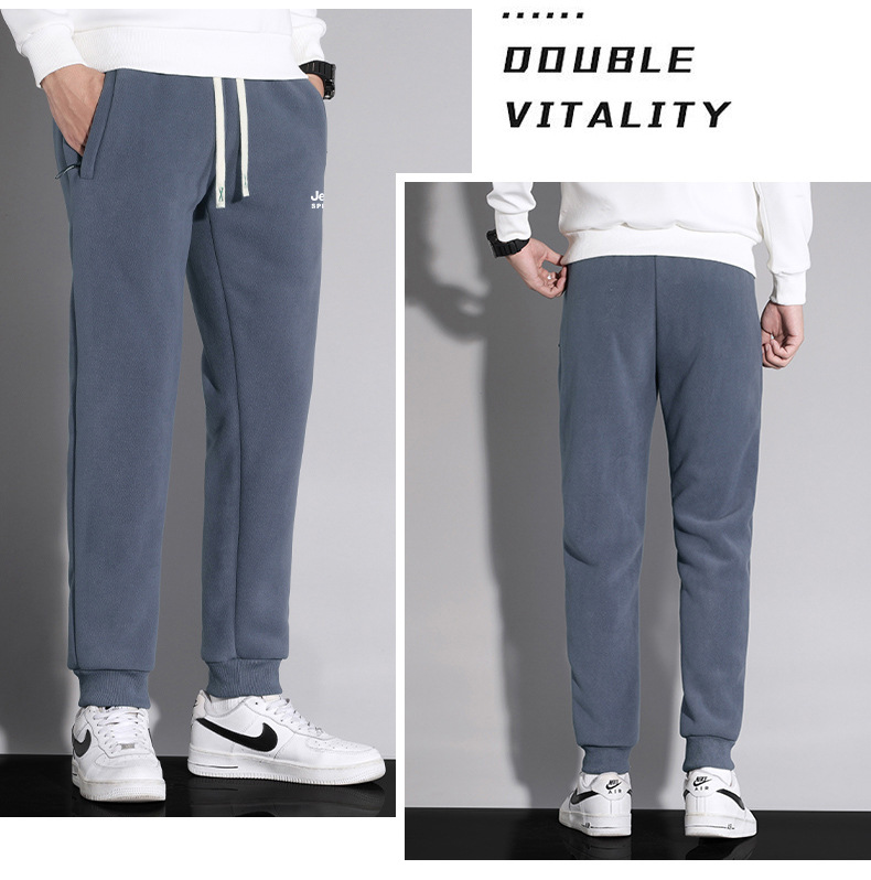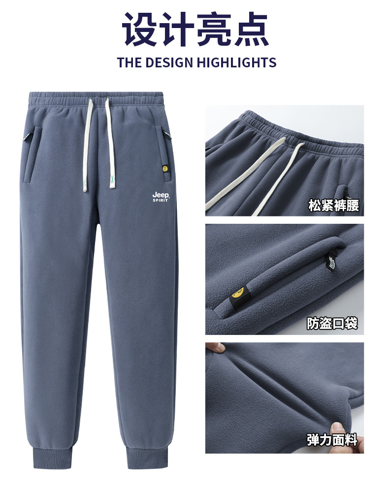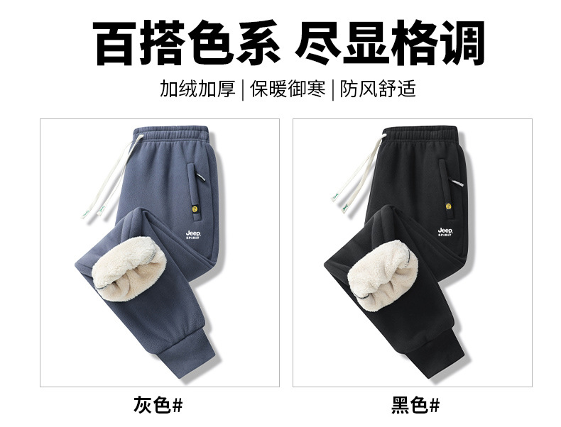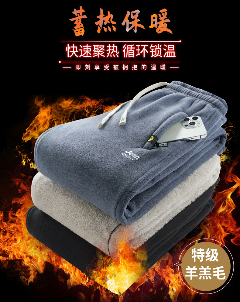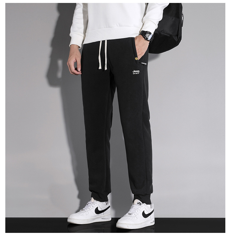 JEEP SPIRIT мужские повседневные брюки из плотного флиса с кашемировым поясом свободные осенне-зимние брюки на флисовой подкладке 7441