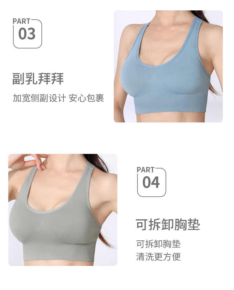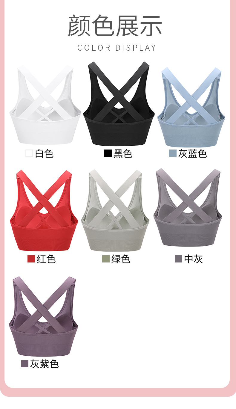 Дышащий; Бесшовные; Красота спины; Поглощение пота; Анти -- Выдержка; Удобный; Боковое закрытие; Коллекция груди