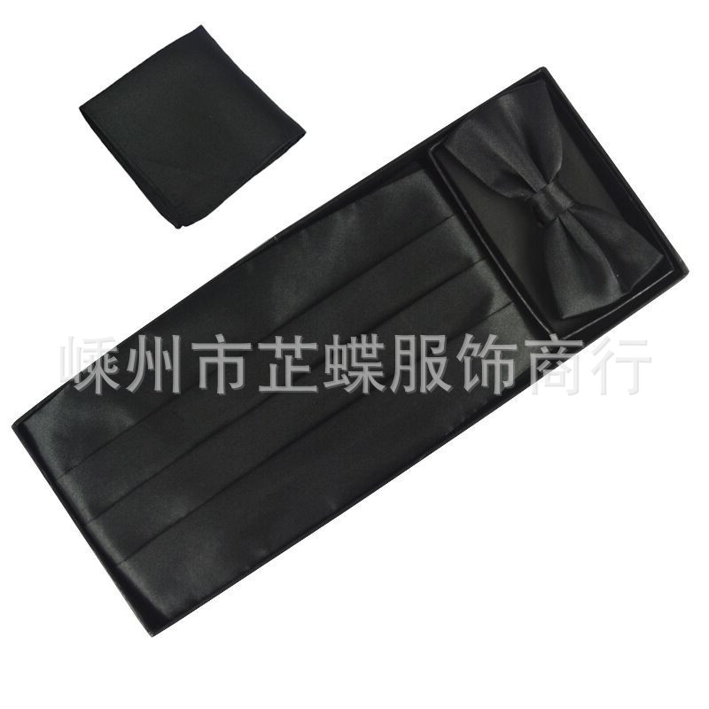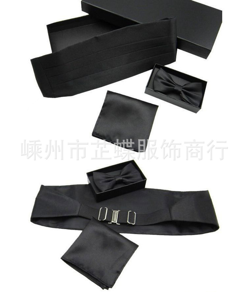 Черный пояс + галстук-бабочка + квадратный шарф + коробка; Черный поясной тюлень