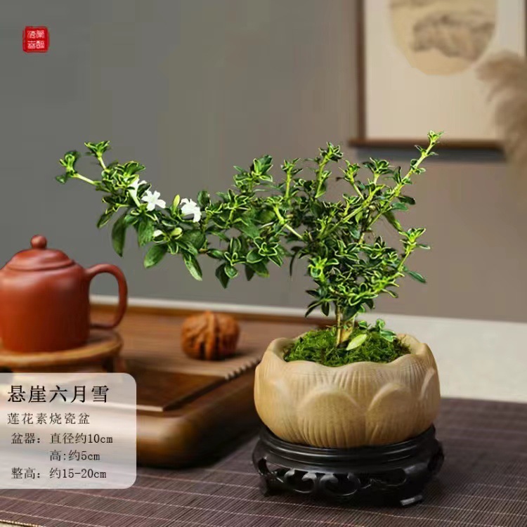 Пномпень Июнь Снежная скала Маленькие горшечные растения Форма Корень Цветение Старый ворс Дзен Бонсай Рабочий стол Офис Комнатные цветы