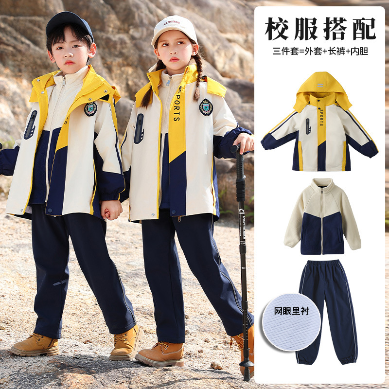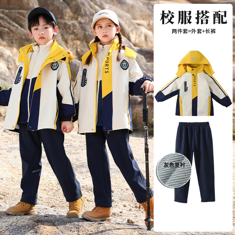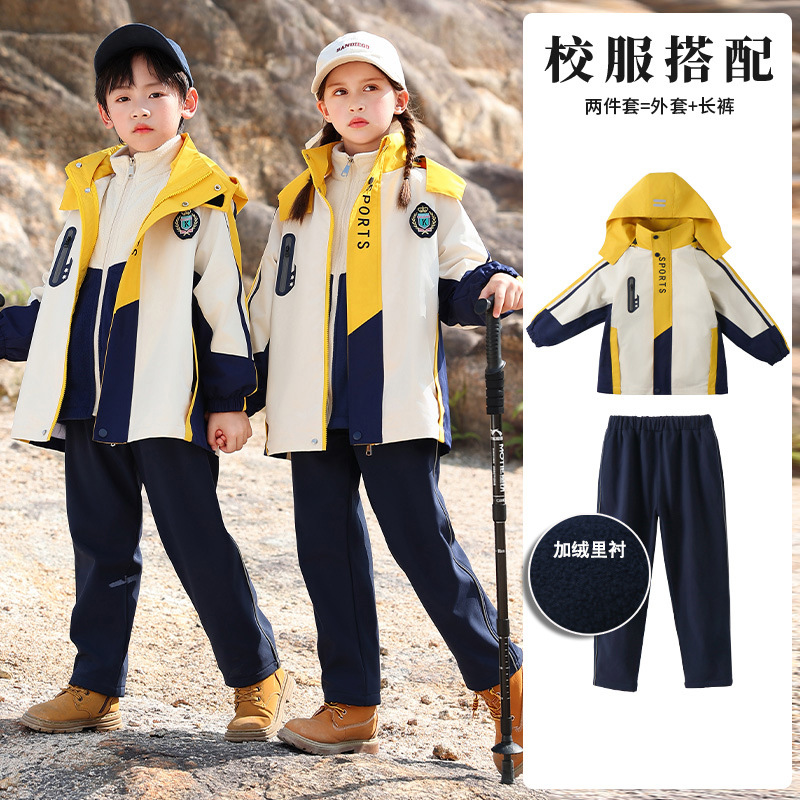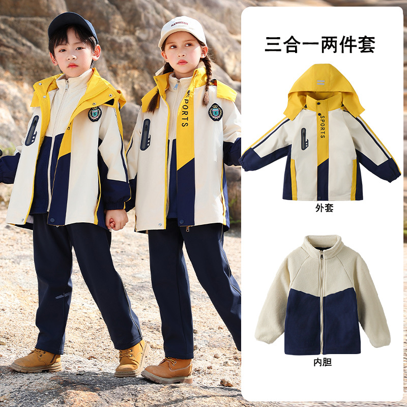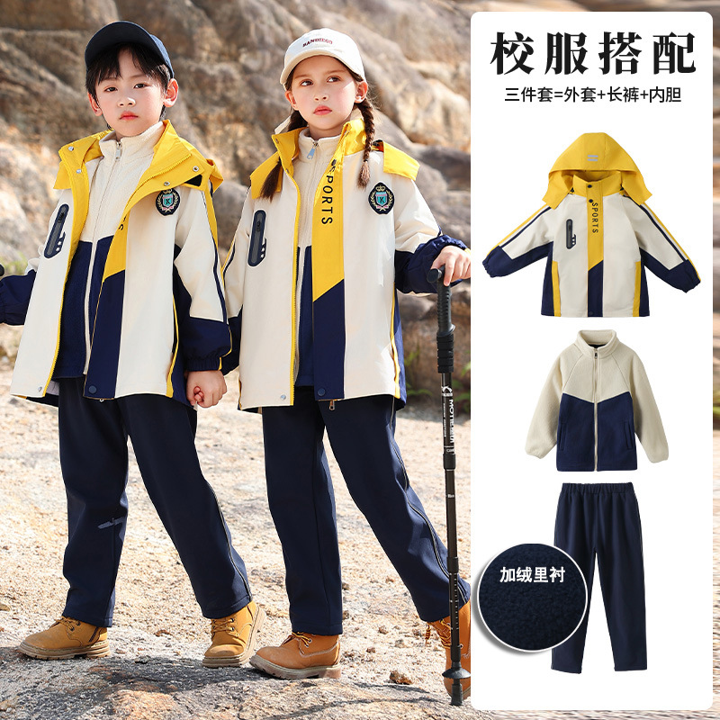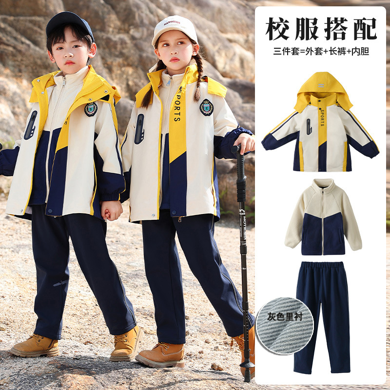 Школьная форма для учеников начальной школы На открытом воздухе Спортивная одежда «Три в одном» Одежда для детского сада Теплый Детский костюм Групповой спортивный костюм