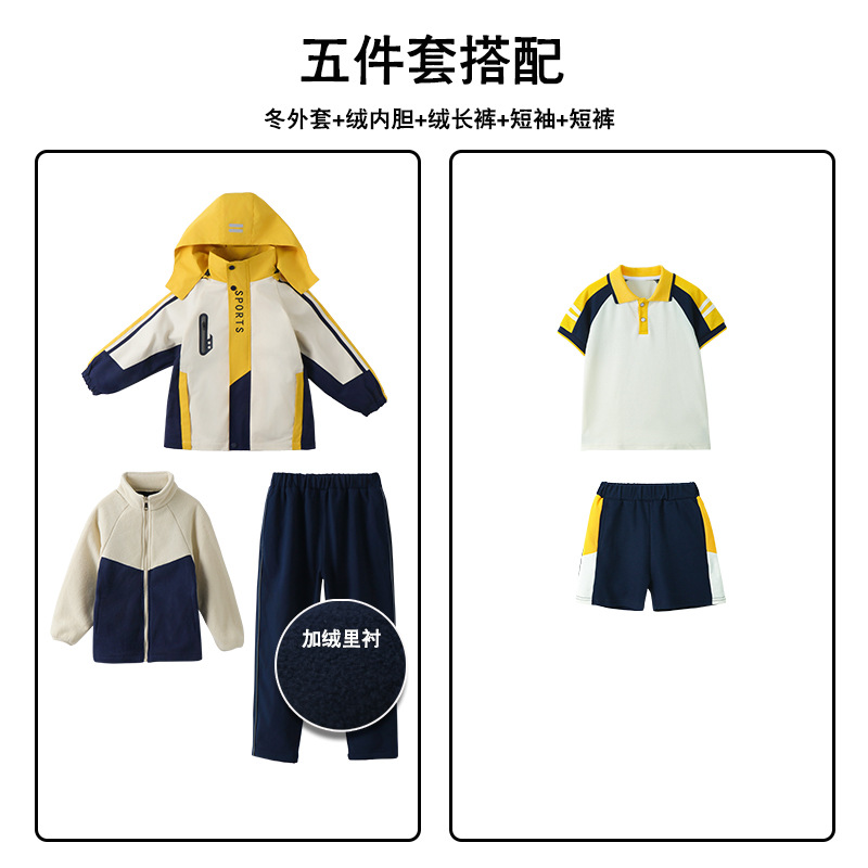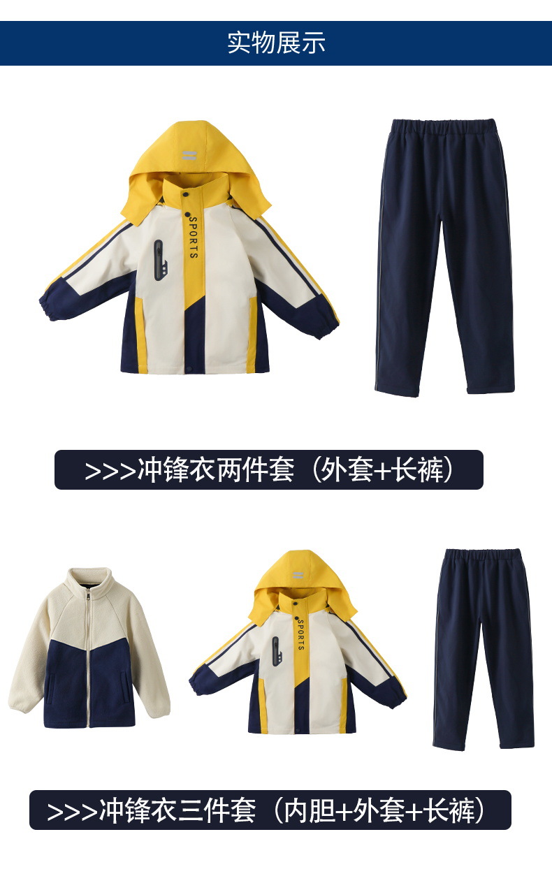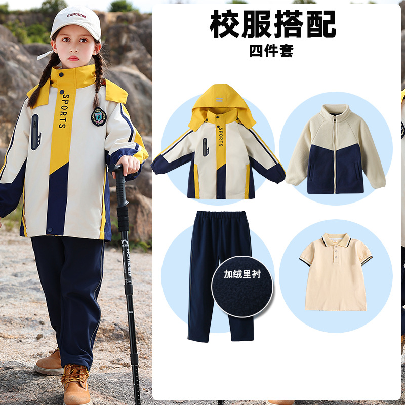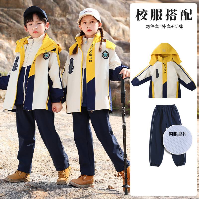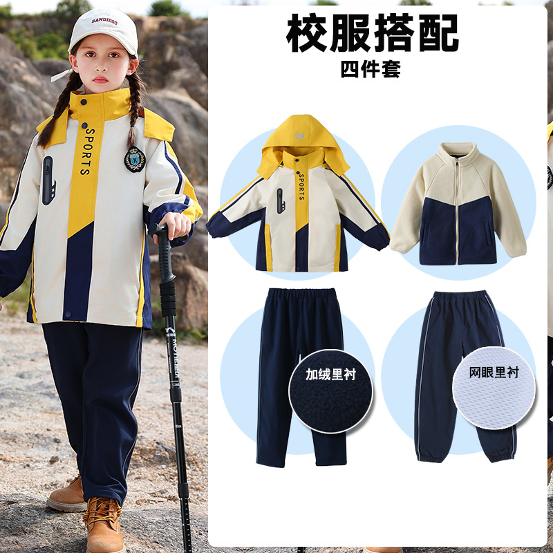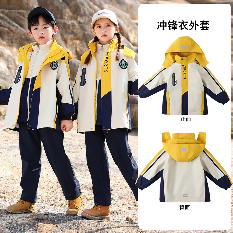 Школьная форма для учеников начальной школы На открытом воздухе Спортивная одежда «Три в одном» Одежда для детского сада Теплый Детский костюм Групповой спортивный костюм