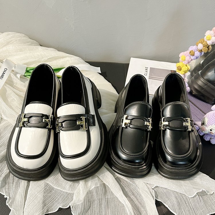 Неглубокие лоферы в британском стиле, осень 2023, новые женские туфли на плоской подошве в тон, кожаные туфли на платформе jk, женская обувь на толстой подошве, увеличивающая внутреннюю высоту