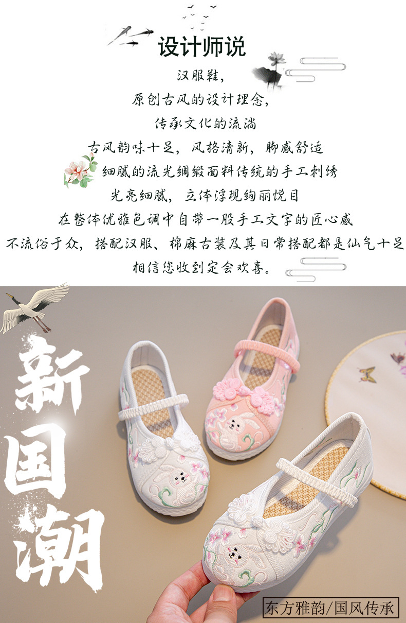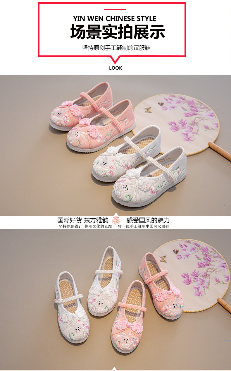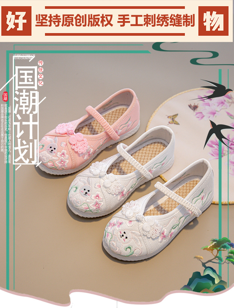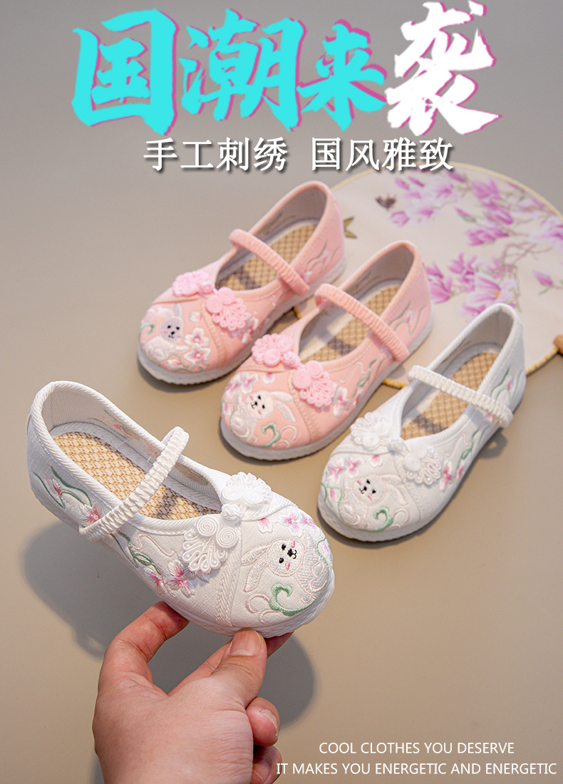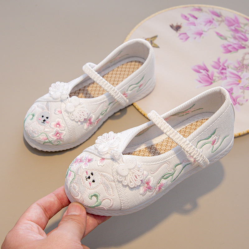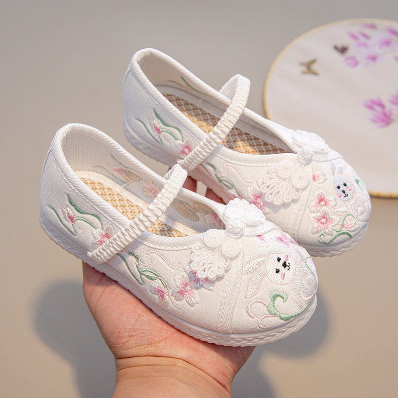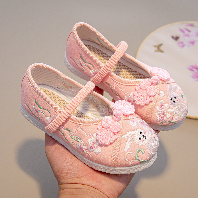 Традиционные китайские вышитые туфли Ханьфу для девочек, этнические костюмные туфли для детей, вышитые тканевые туфли в стиле старого Пекина для принцесс в костюме Тан.