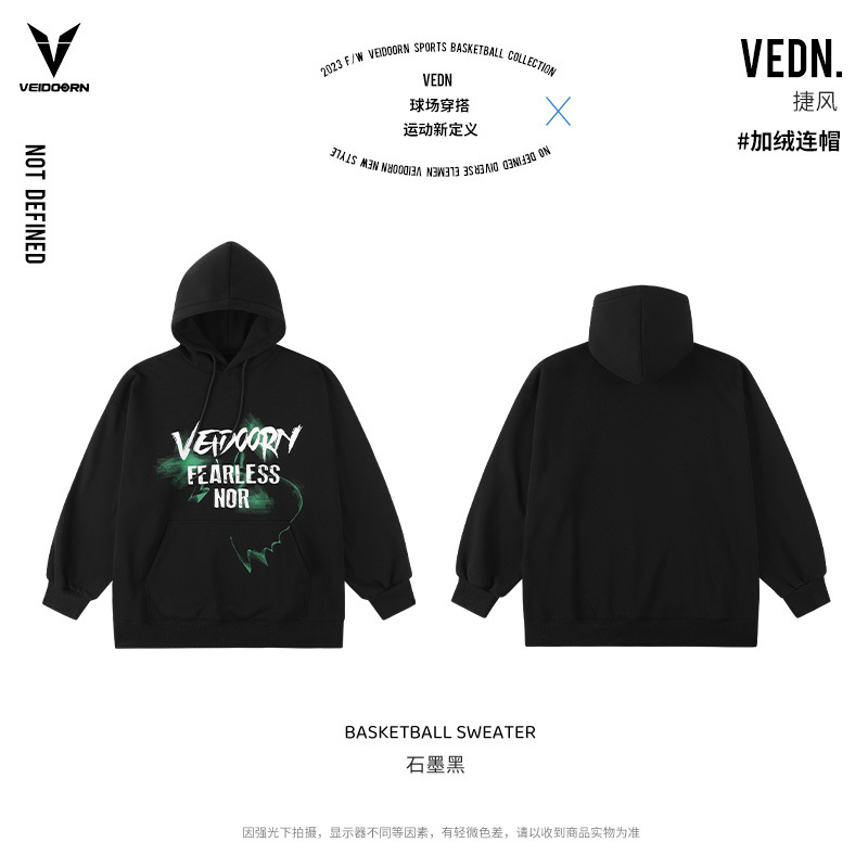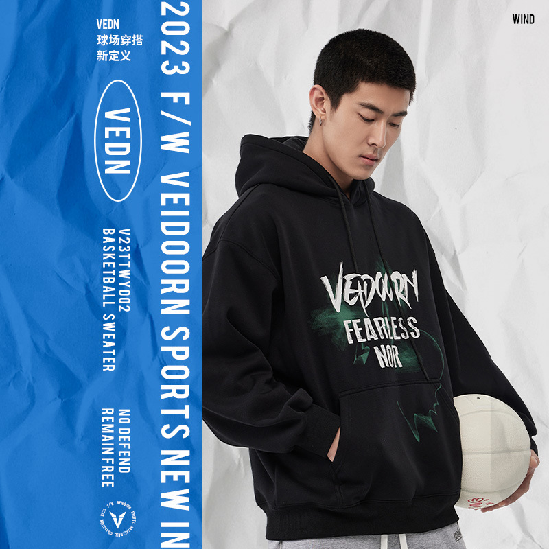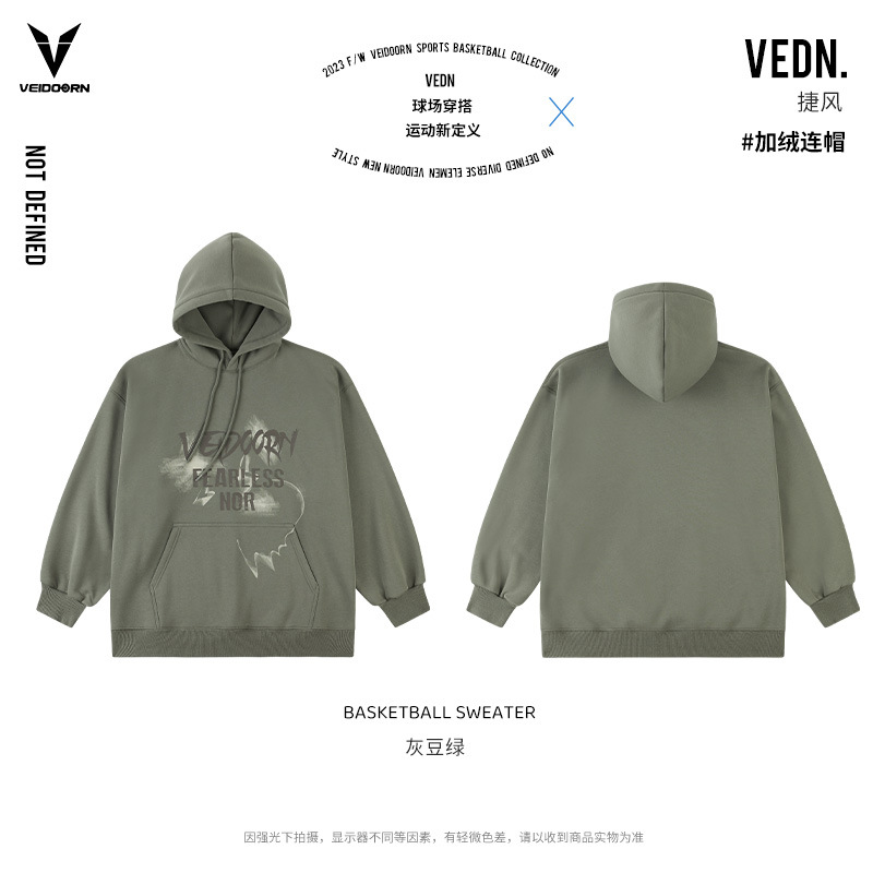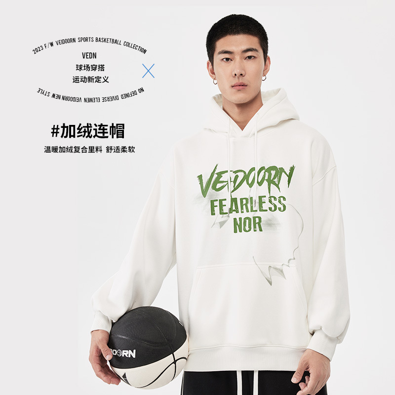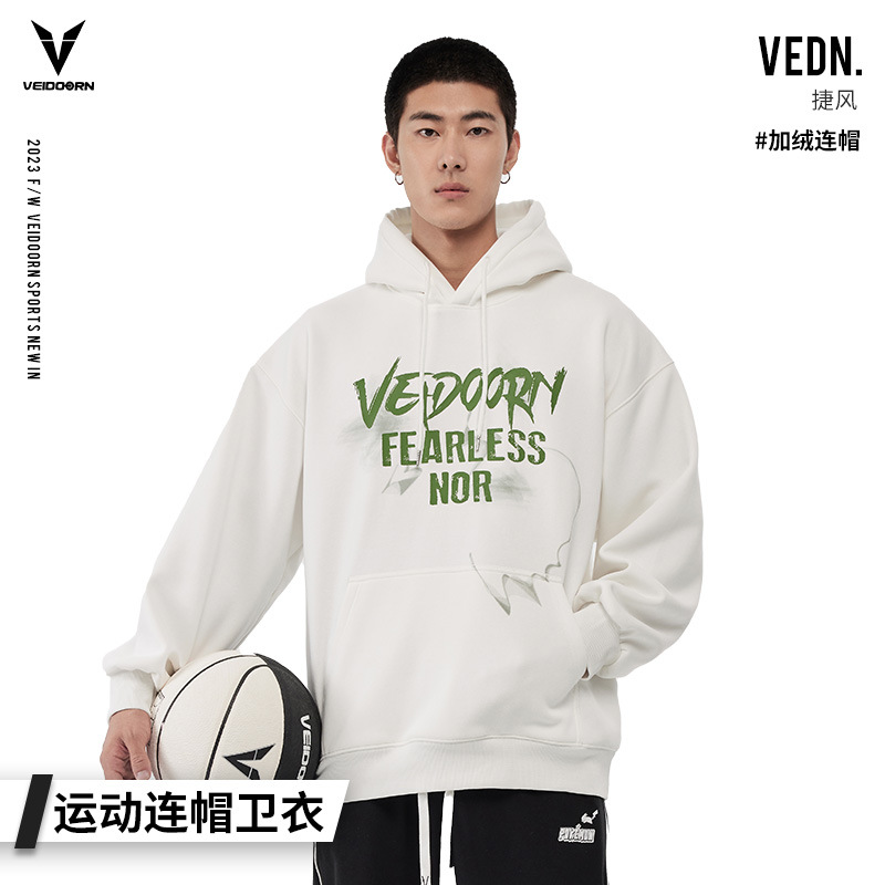 Пуловер с капюшоном и длинным рукавом Wei Dong Jie Feng, зимний свободный свитер на флисовой подкладке, повседневный мужской топ для бега и баскетбола больших размеров