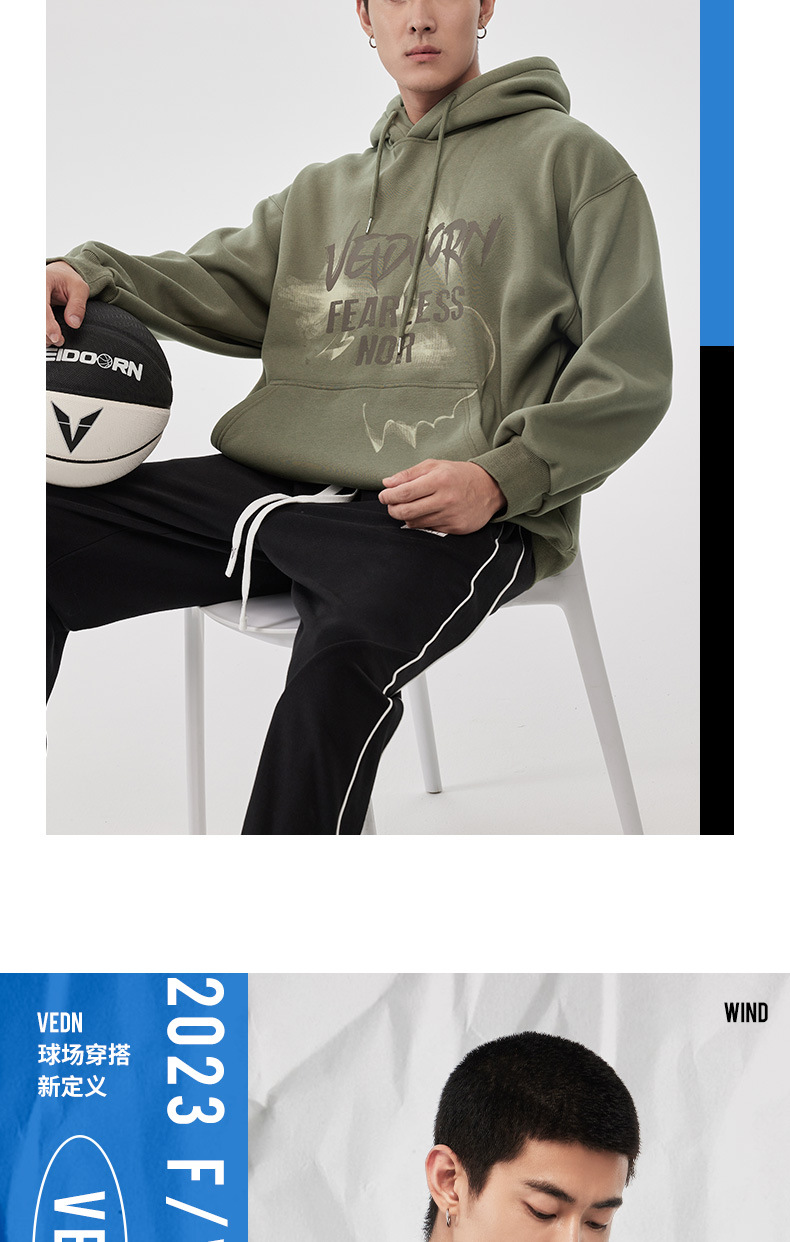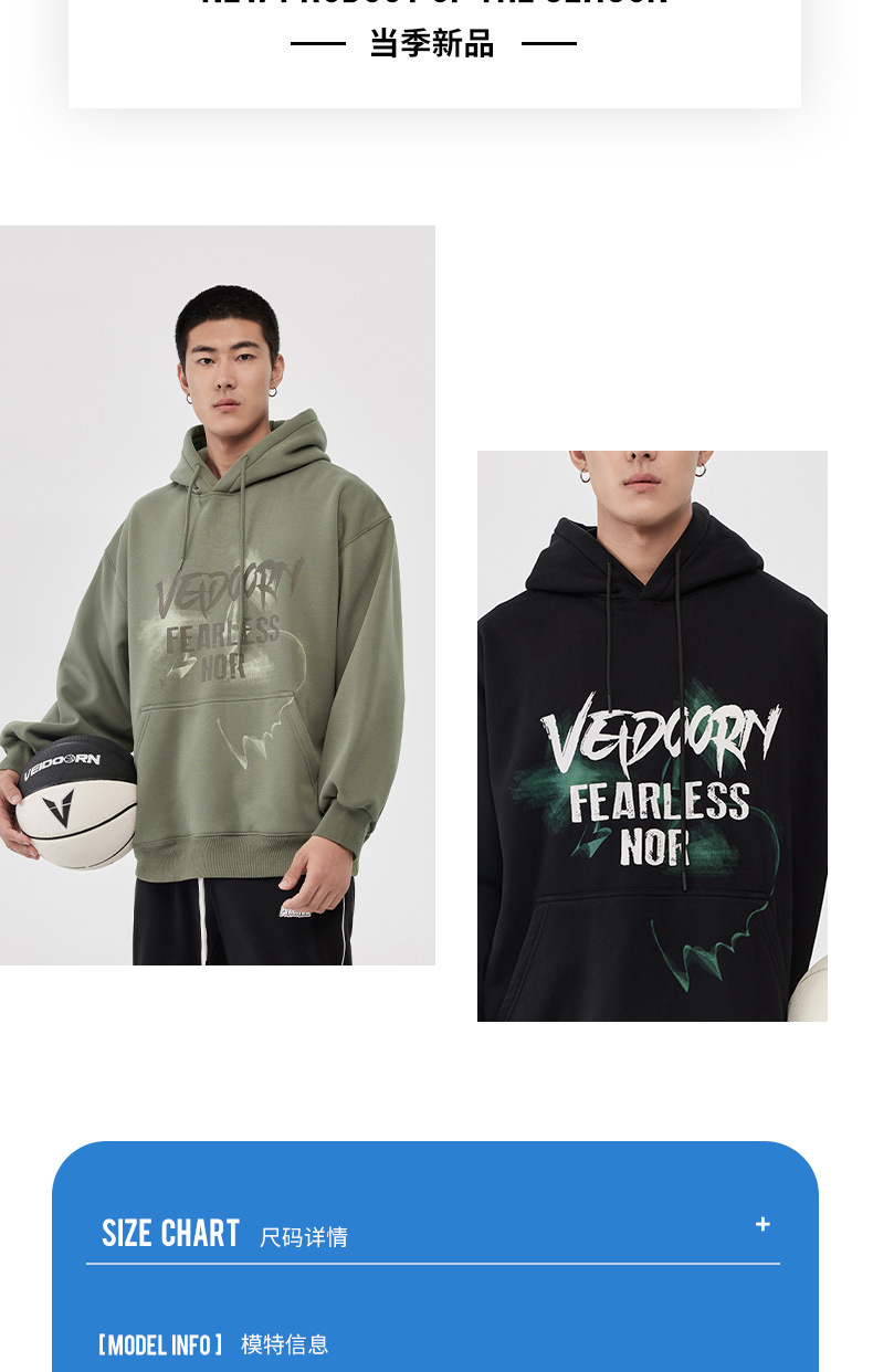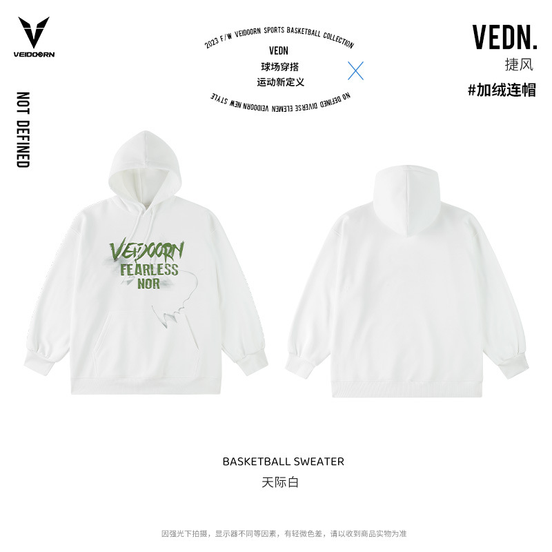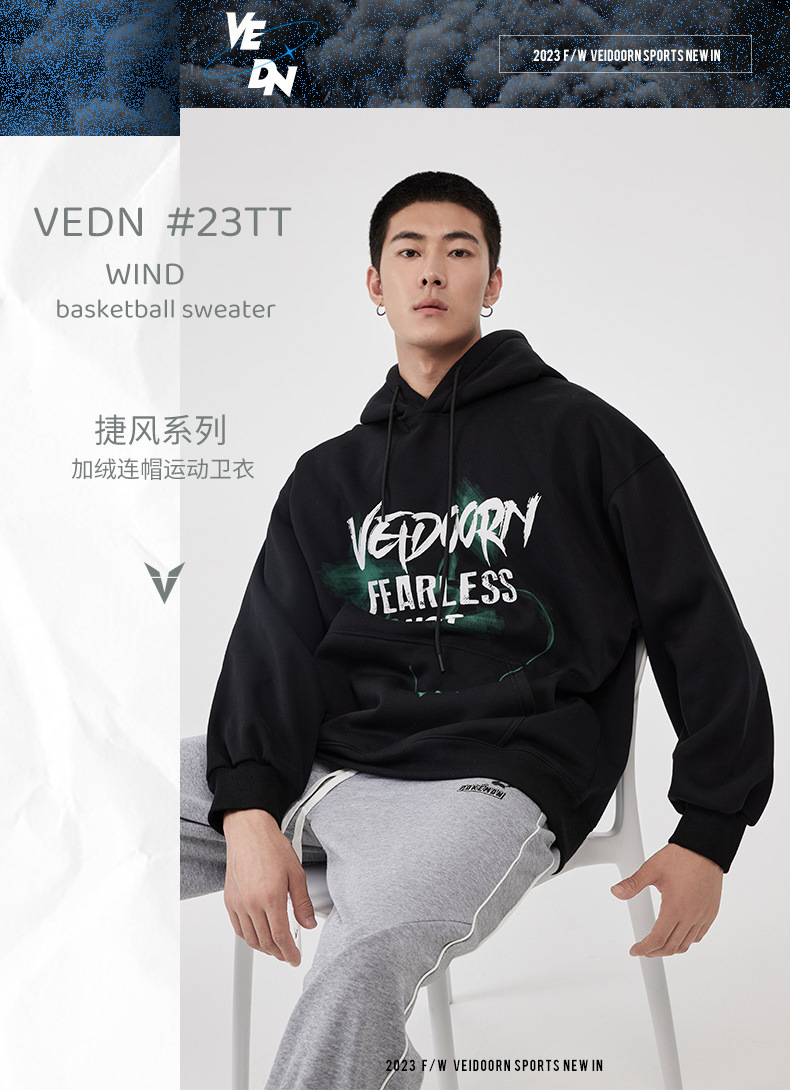 Пуловер с капюшоном и длинным рукавом Wei Dong Jie Feng, зимний свободный свитер на флисовой подкладке, повседневный мужской топ для бега и баскетбола больших размеров