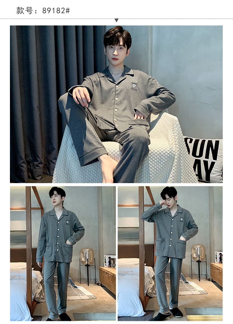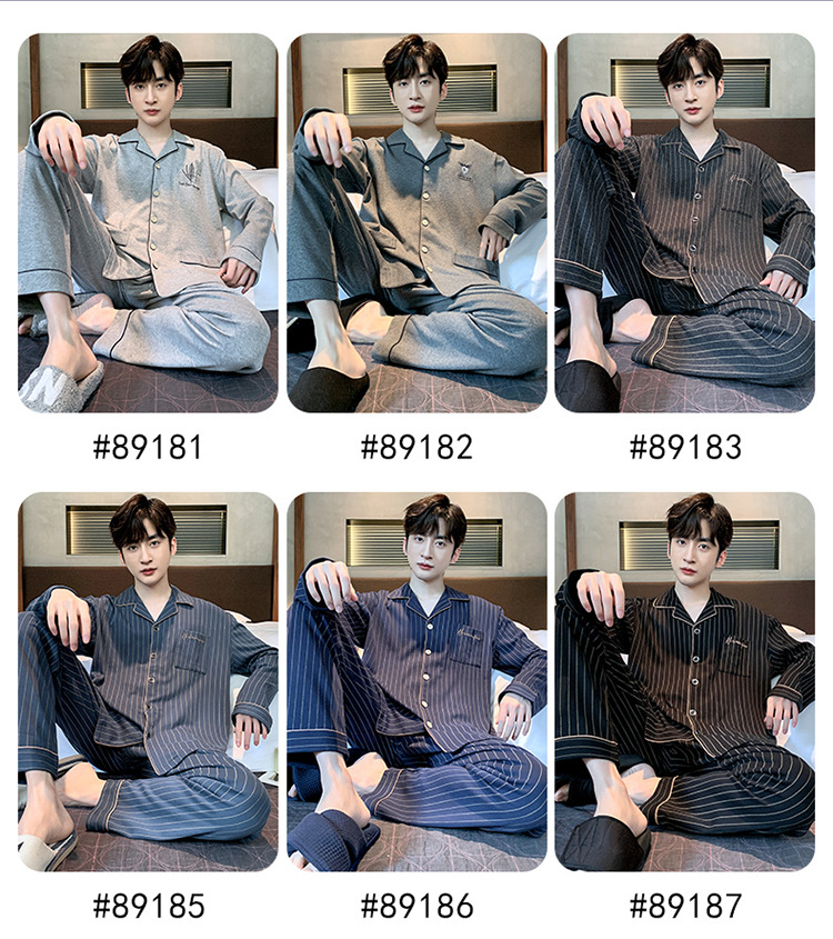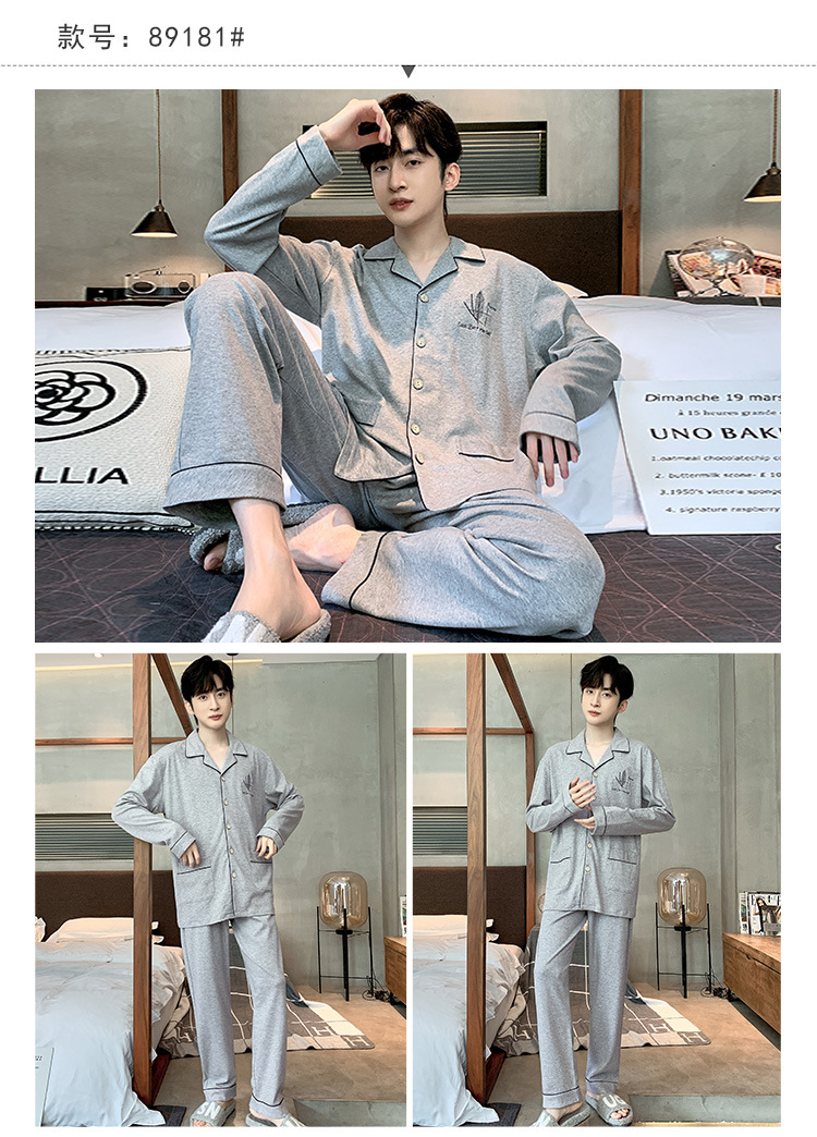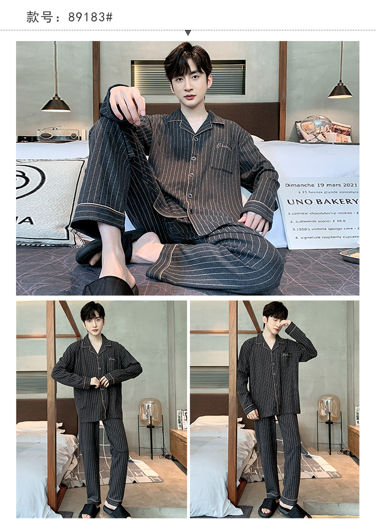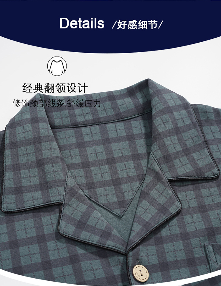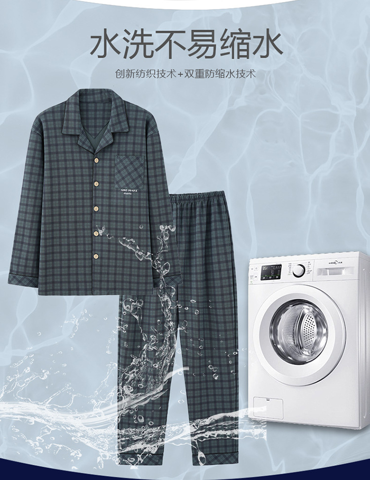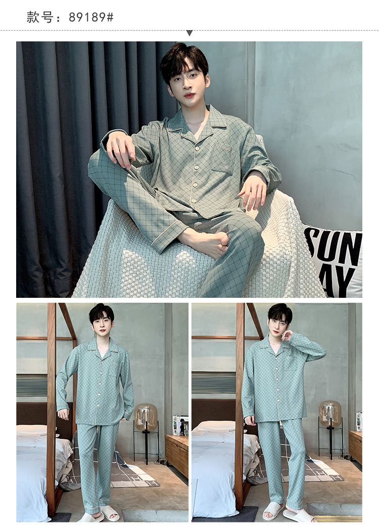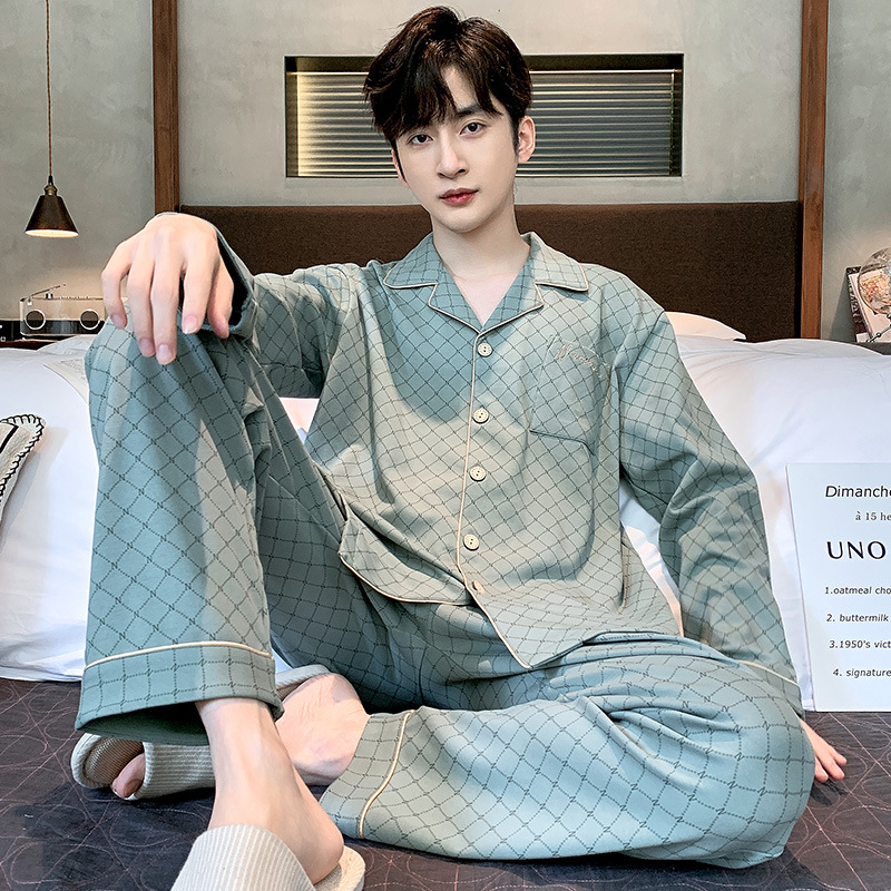 Пижама Мужская весна-осень Повседневный Кардиган с длинными рукавами Клетчатая Мужская осенне-зимняя тонкая Домашняя одежда больших размеров