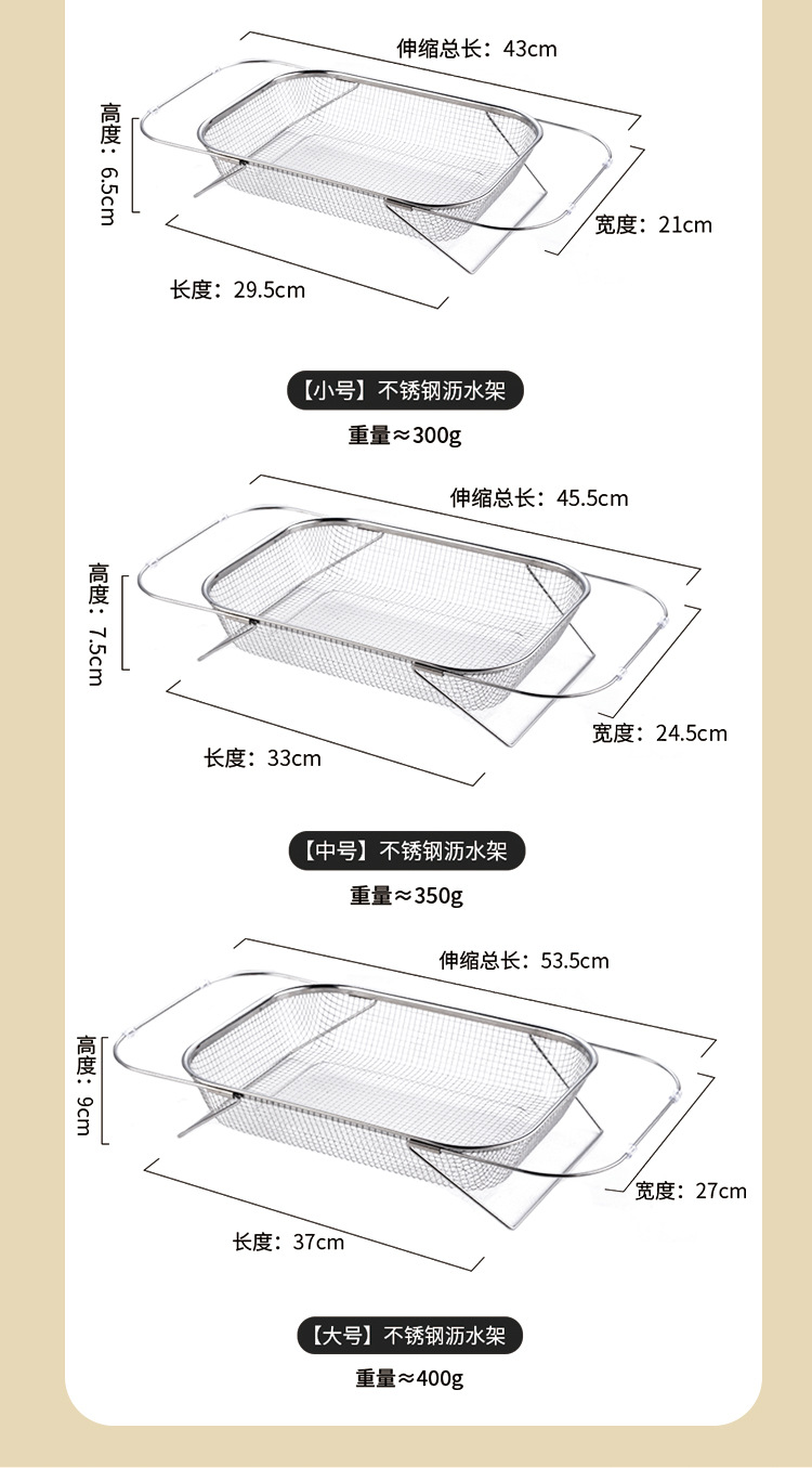 Стеллаж для сушки кухонной раковины Выдвижная корзина для слива Корзина для стирки из нержавеющей стали Стеллаж для умывальника Многоцелевая стойка